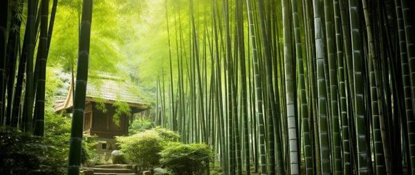 林木掩映的草屋中,似有故人重逢,甚是高興。