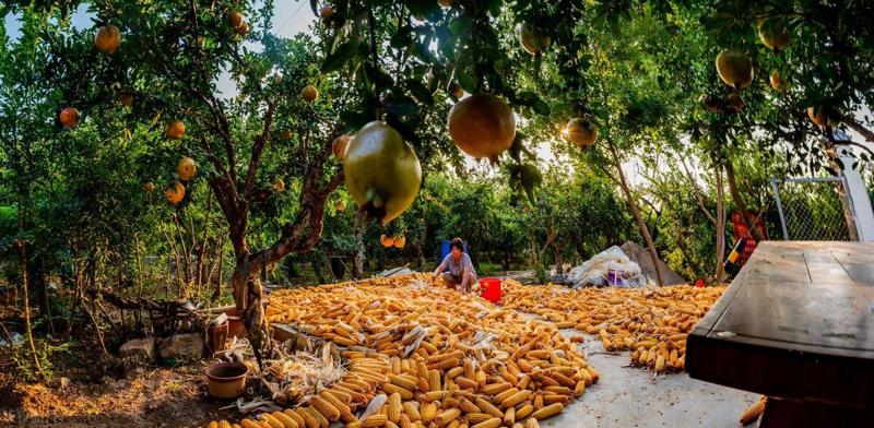 -播種五穀的,風調雨順。手磨多層繭,汗水灑農田,稻菽千重浪,地鋪萬斛糧,稻穀堆滿倉……