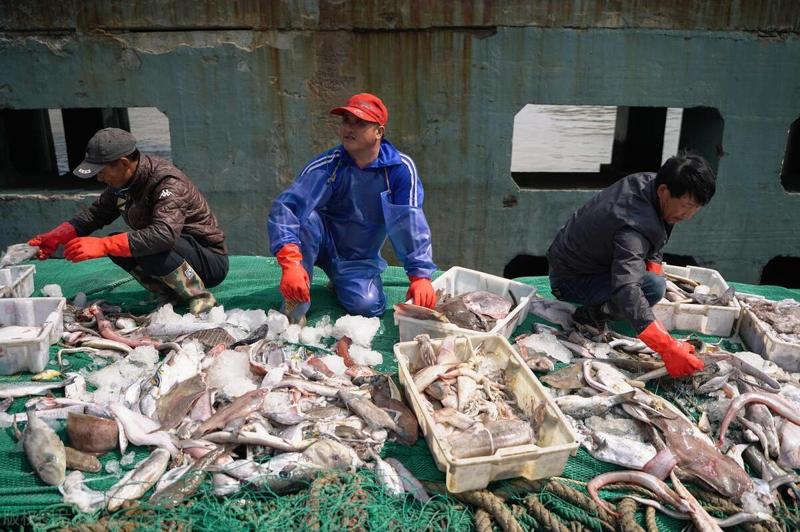 -從事海洋捕撈的,揚帆遠航,乘風破浪行,魚蝦載滿艙,漁家笑開顏……