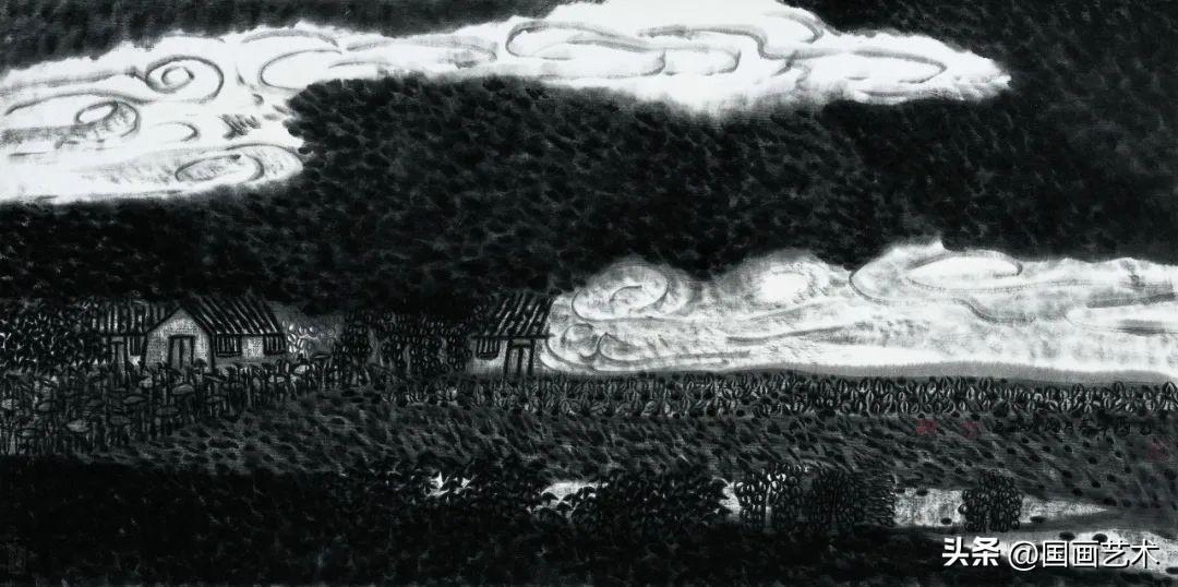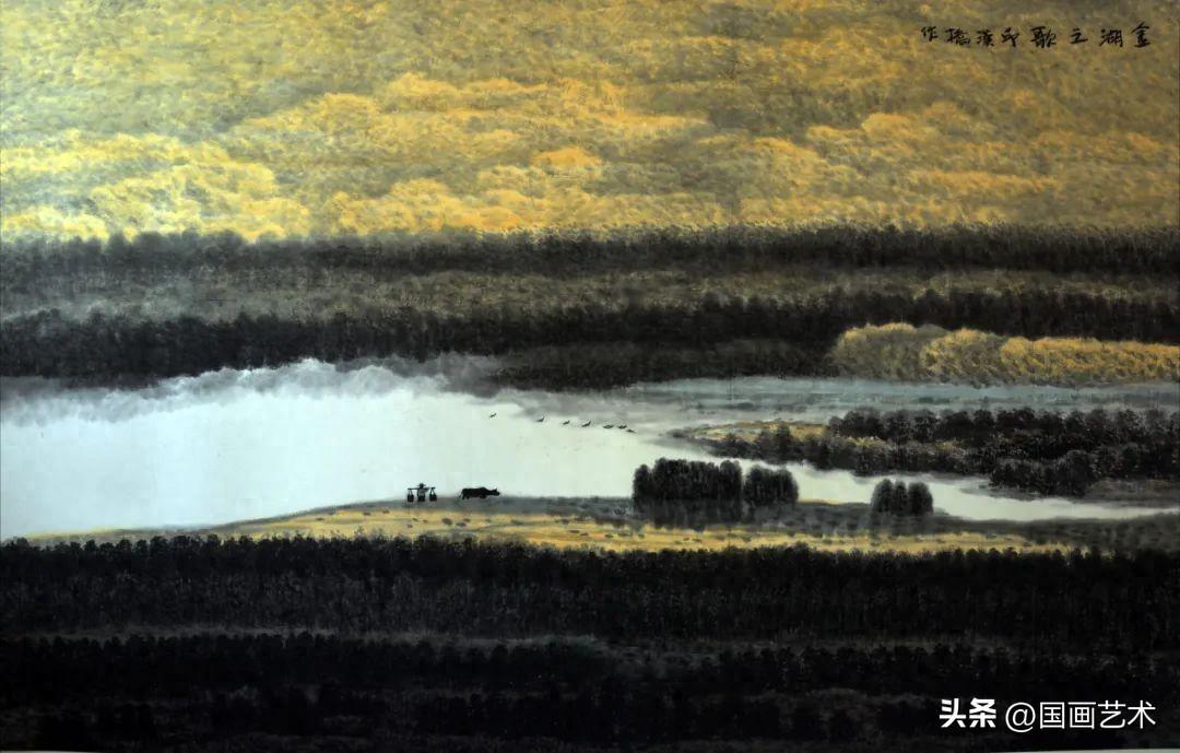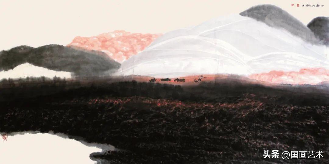 在邱漢橋的巨幅北國山水畫中,我們可以看到他如何將傳統山水畫的筆墨技巧與現代藝術的表達方式融爲一體。他的山水畫不僅僅是對自然景觀的再現,更是對自然和人類關係的深刻思考。他的畫作中山巒起伏,雲霧繚繞,展現了自然界的壯麗與和諧。而在他的南方田園音樂般的寫意作品中,則展現了一種更爲細膩和抒情的美。這些作品如同無聲的詩歌,傳達出一種寧靜而深遠的美學意境。