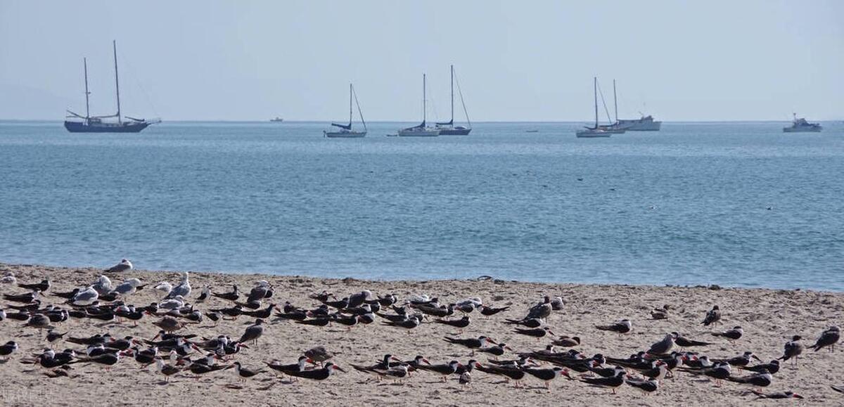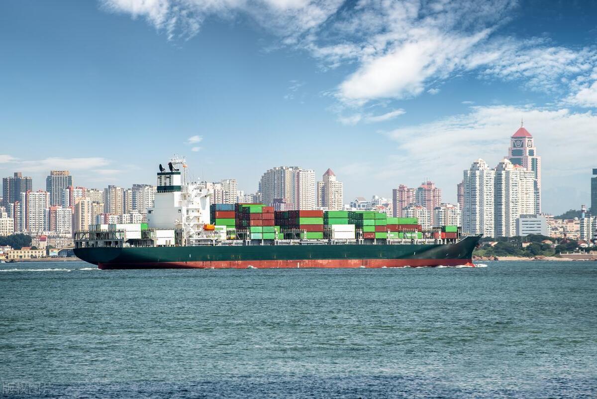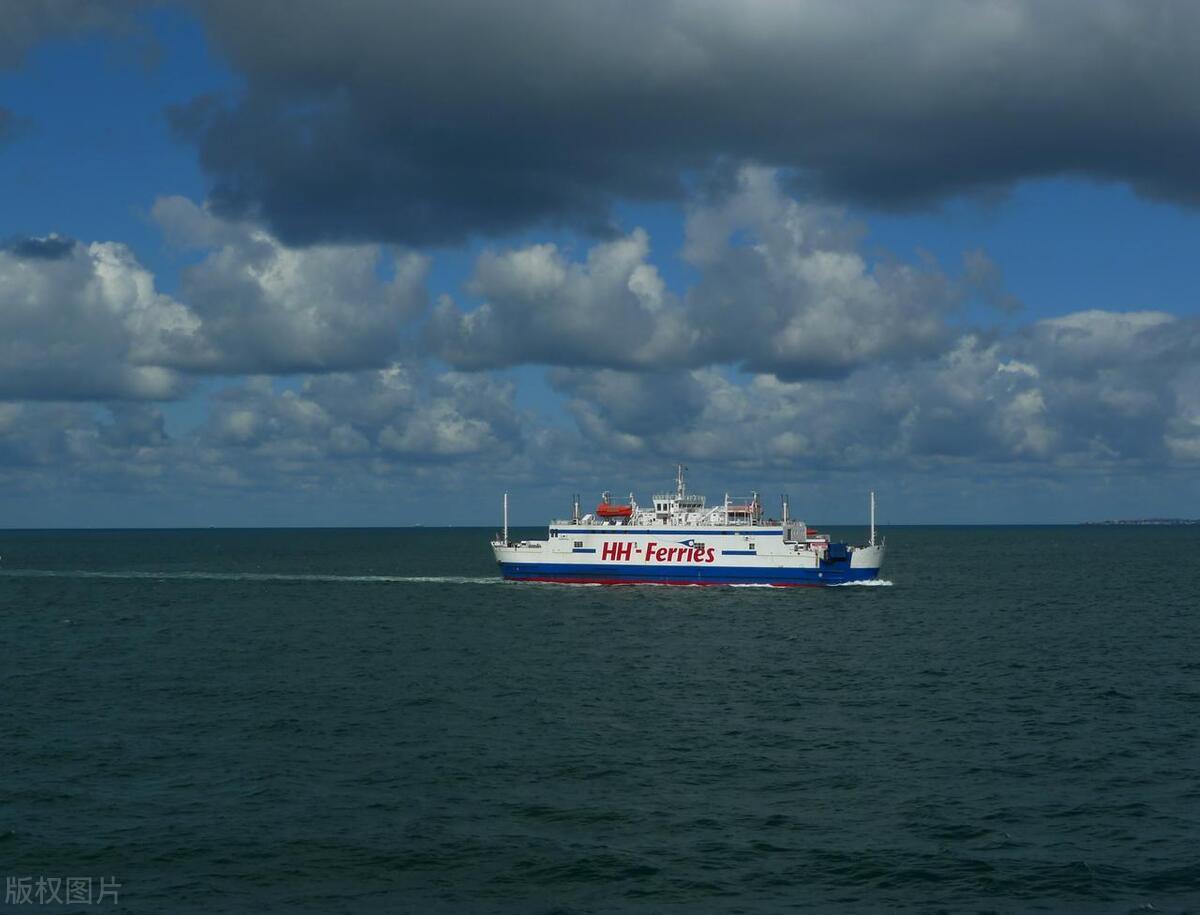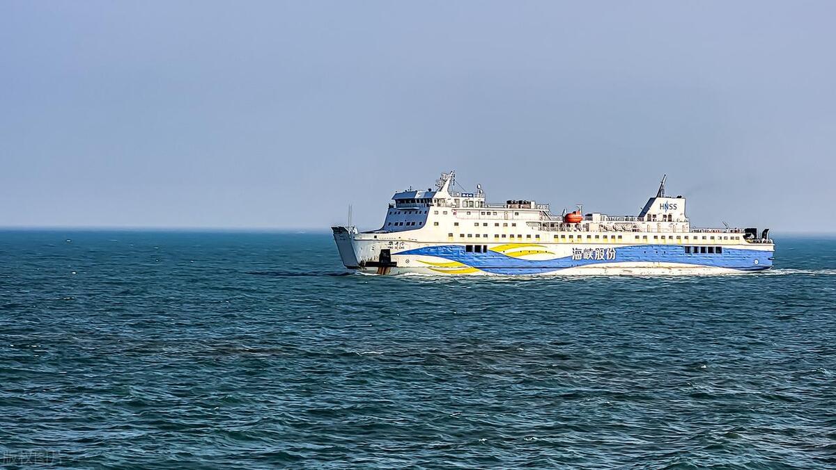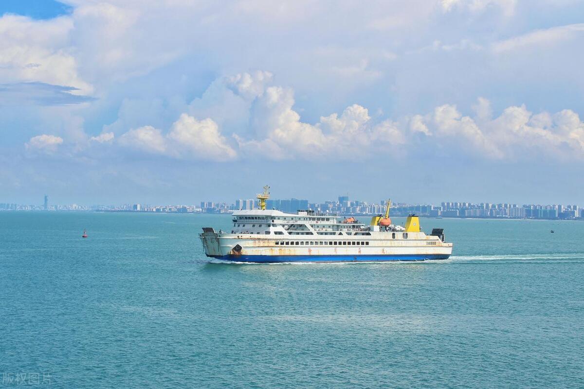 從遠處望去,大海蒼茫一片,只有遠道趕海的船舶伴海航行。