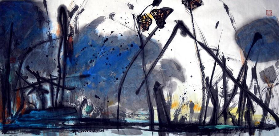 在我看來殘荷倒是有幾分音樂的韻律,有幾分視覺的符號,從而構成一種陽春白雪知音難覓,極度的落差倒影孤零零的但卻很有力度地呈現在水面上,彷彿看穿幾度春秋,彰顯另一幅素顏寡淡的景象,依然亭亭玉立的姿態,比繁花似錦的鼎盛時期更吸引着畫家們描繪與表現它的慾望。