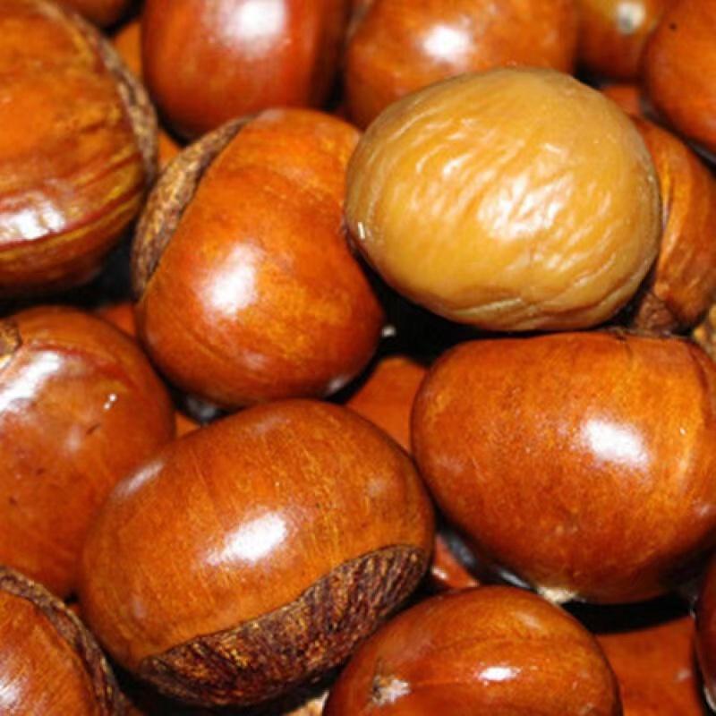 栗子,是大自然秋冬的恩賜物,原來長成後共有三層保護層。栗子的外形像一個個小刺蝟。外殼長滿長長硬刺,很扎手。堅果慄的外殼大都有保護層,呈紅褐色的外皮,緊貼慄仁內皮還有窗紙薄薄的一層保護膜。松子有鱗瓣,核桃、白果有苦澀的外皮,有人猜測是爲了對付松鼠而進化出來的。