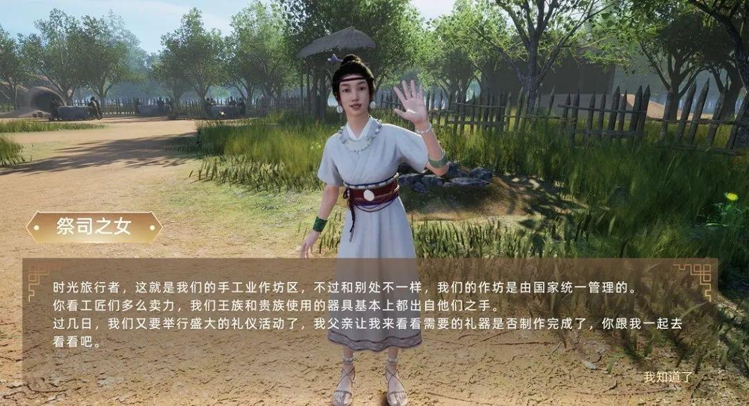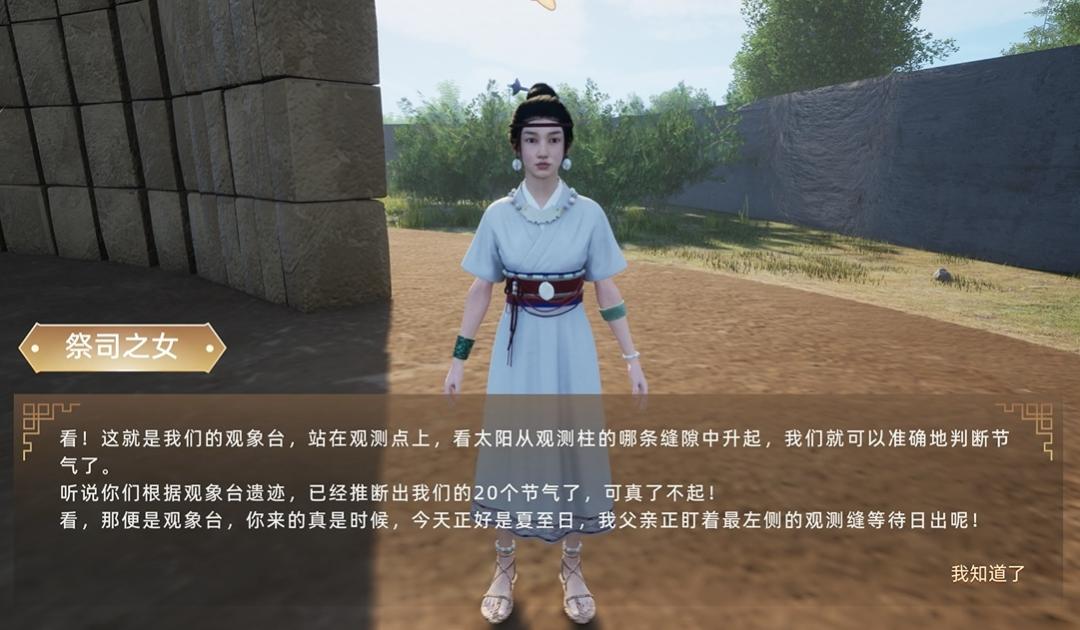 在與祭司之女的對話中,她會帶你瞭解陶寺古城的概況,驕傲地講述這偉大的陶寺王國。“嗨!你好呀,時空旅行者!歡迎來到“最初的中國”——陶寺.......我們擁有280萬平方米的都城,包括世界最早的觀象臺、氣勢恢宏的宮殿、獨立的倉儲區、官方管理下的手工業區等,在整個中原地區,那可是首屈一指呢!”圖 | “央博”APP中的陶寺古國大祭司的女兒正在介紹觀象臺圖 | “央博”APP中的陶寺古國大祭司的女兒正在介紹手工業作坊區