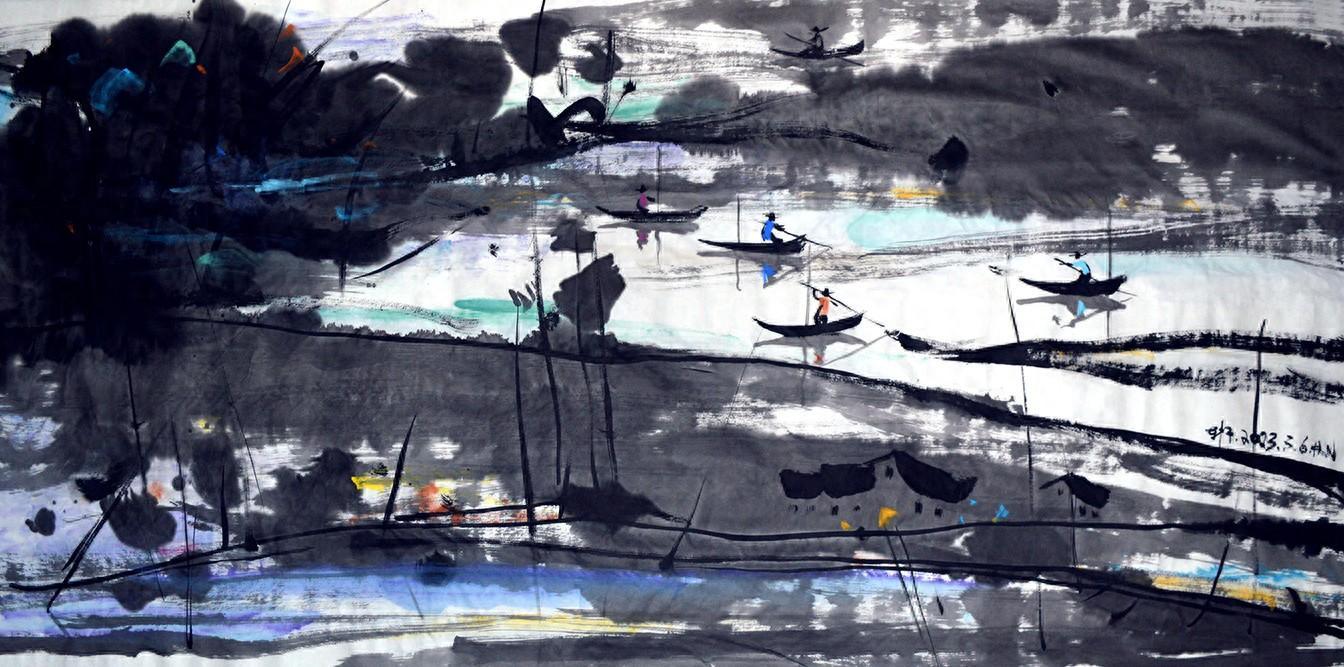 煙雨朦朧,錯落有致,一切都在架構點線面構成的視覺感官刺激裏,畫面裏似乎有目不暇接而豐富的形態,其實不然,只不過是點線面繪畫語言對比關係處理的比較巧妙應用的結果而已,從而使其耐看又沒有什麼可看,感覺意猶未盡耐人尋味。當我們瞭解了視覺最基本的語言與詞彙,我們就能利用它建構畫面的形式美感,讓人能感受到卻具體說不清楚,這就是構成應用的奇妙之處。