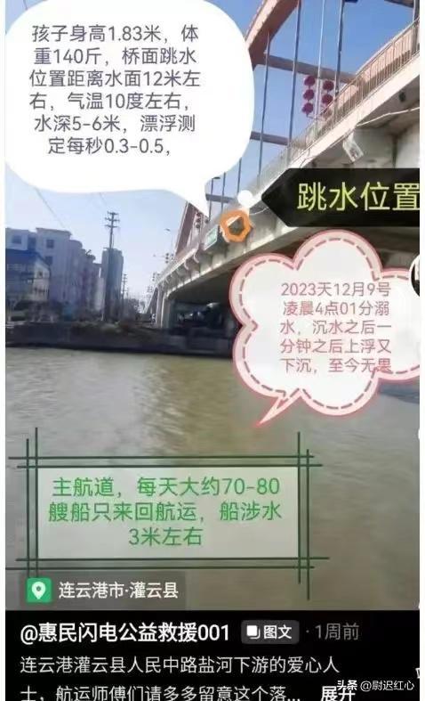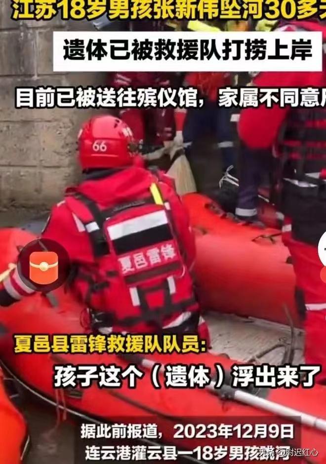 連雲港灌雲縣18歲高三男孩張新偉跳河,搜救隊最近已打撈上岸