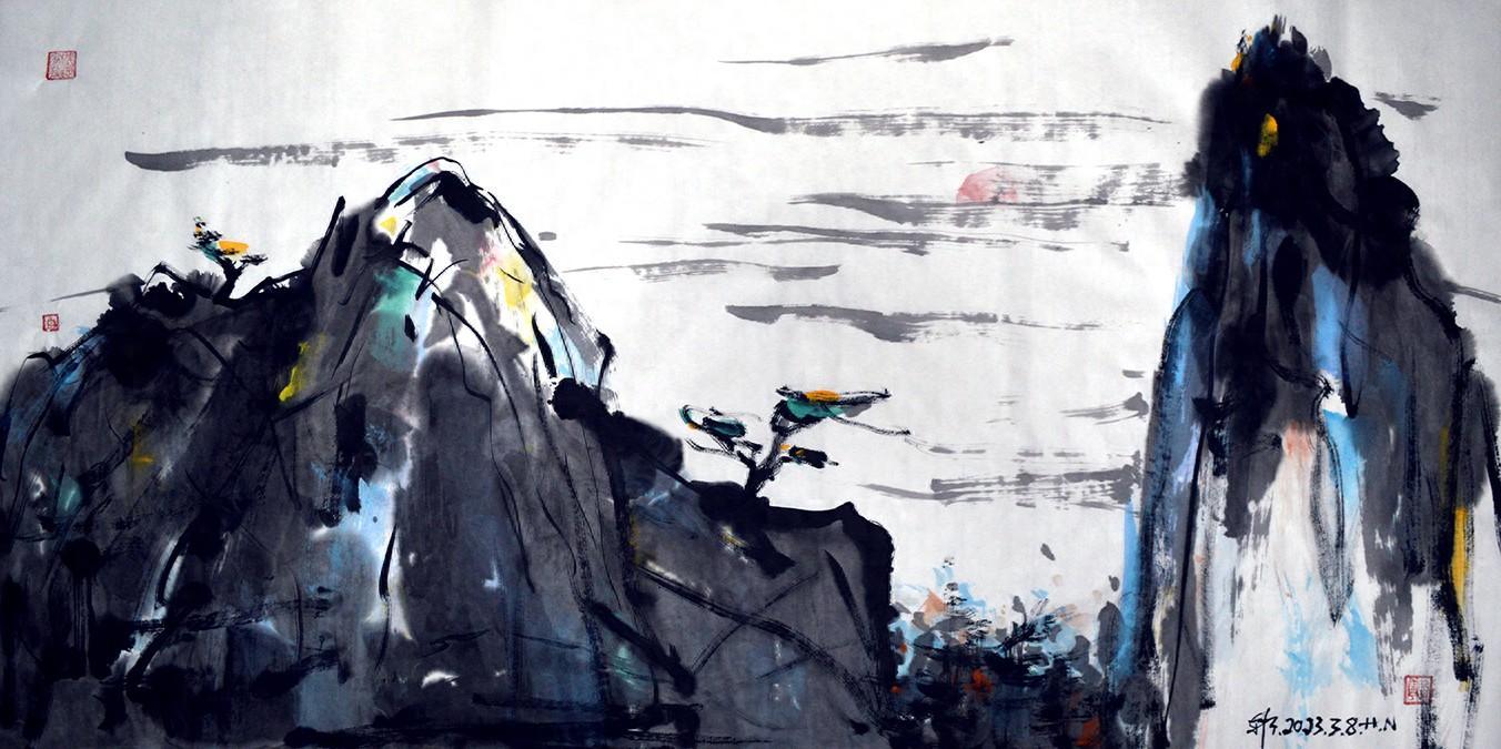 山高不高險峻不險峻,偉岸屹立在繪畫表現上我覺得不是很重要,而是好看纔是我們感受的需要,理解一幅畫是需要分析認識的,而接受一幅畫是需要感覺感知的,前者是要通過繪畫技法路徑才能通達理解,後者則息息相通的感受着共鳴與喚醒久違的初衷。