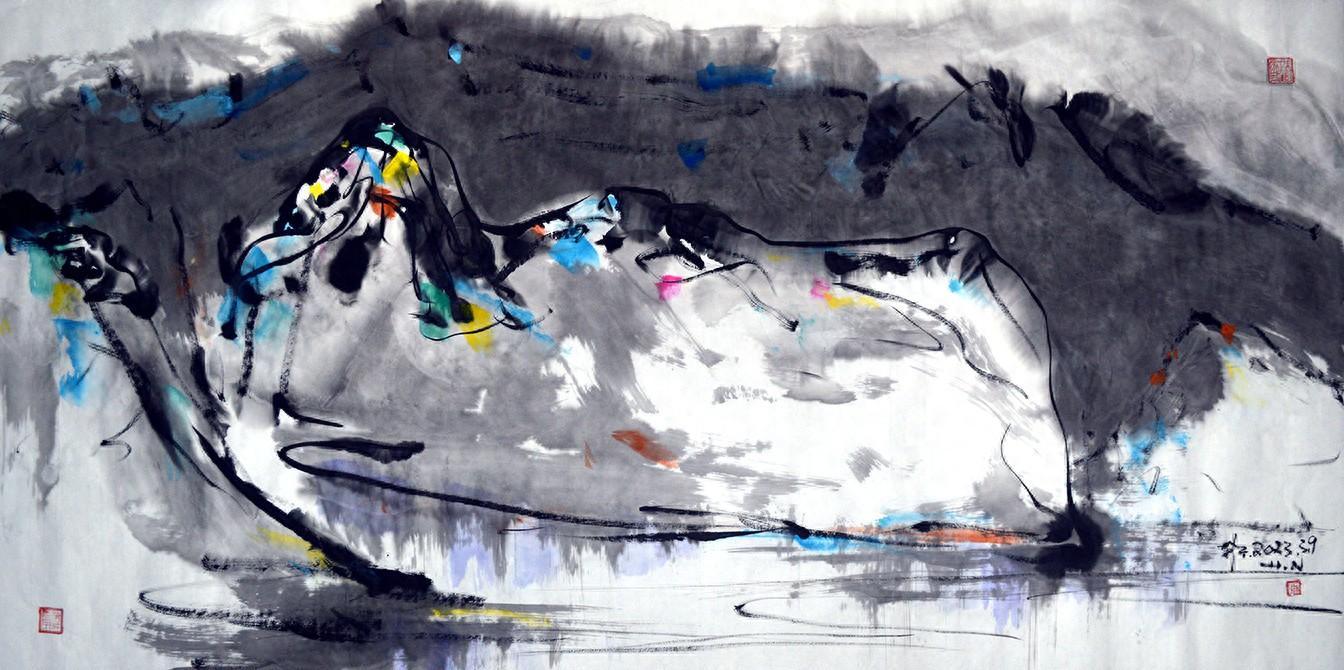 似乎是平面又似乎有些層次變化,在明暗之中又產生一種空間感,在對比關係當中,其它的繪畫因素都擺在其次的位置上,突出的賞心悅目的形式美感構成元素與詩畫的意境表現。能否在抽象與不完整的繪畫表現就純粹的美感而言存在一種當然,或許就是現在時代的某種特徵與分解之現象,只追求自我美感的個性化效果,而非要在符合繪畫表現的空間與立體及冷暖色的前提下,才能談及美術作品展示的審美意識與理念。