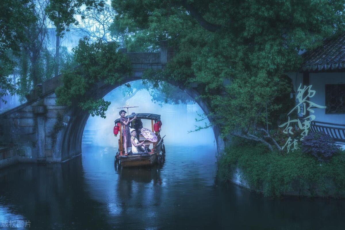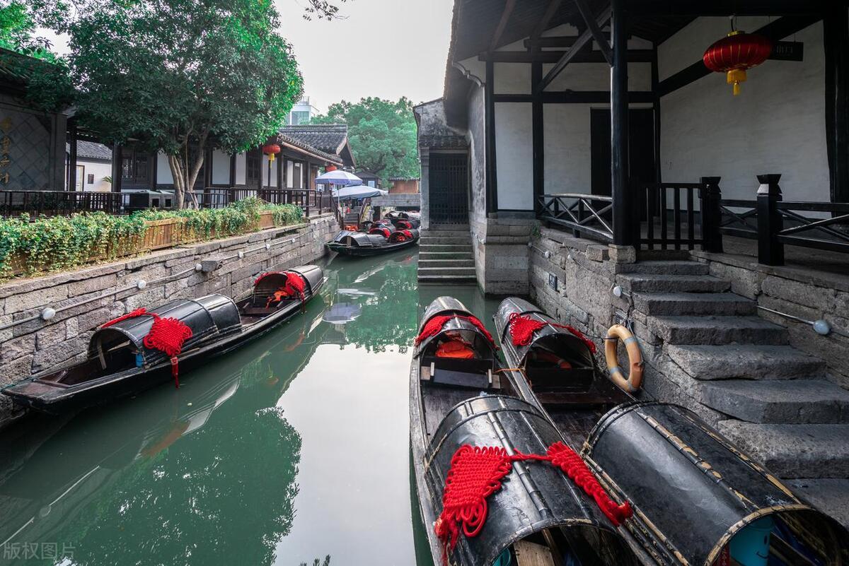 水墨丹青宛畫卷,古鎮泊舟靚麗景。