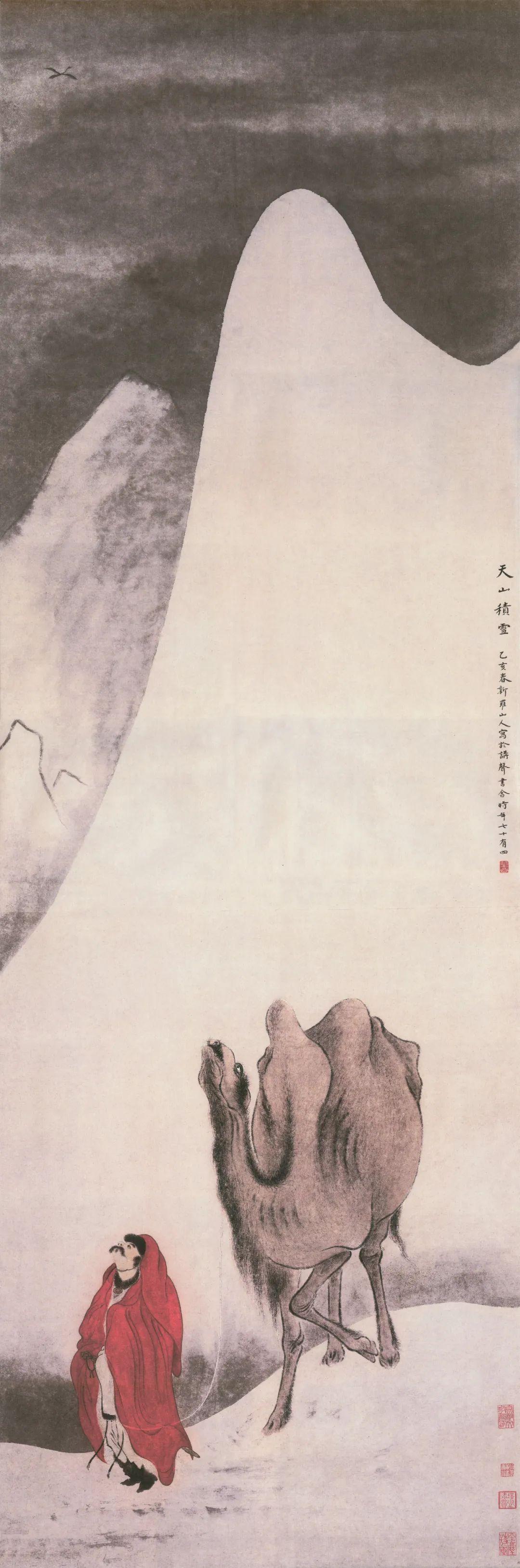 邊塞行旅是華嵒經常表現的題材之一,《天山積雪圖》描繪的就是唐人遠行邊塞的詩意畫面。這或許是源於華嵒的親身經歷,他中年時曾北遊恆山,西遊華山,飽覽雪山寒駝之景,後來更是在創作中表現這種天地高遠、空闊寂寥的詩意。