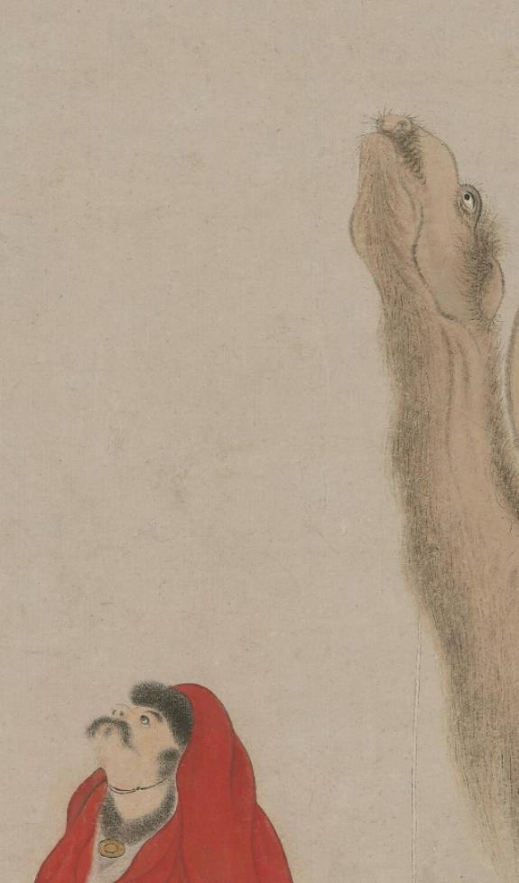 除了形式上的獨特與鮮明之外,畫面還具有一定的故事性。當我們走近細看,會發現人物和駱駝一齊抬着頭望向天空,他們在看什麼?