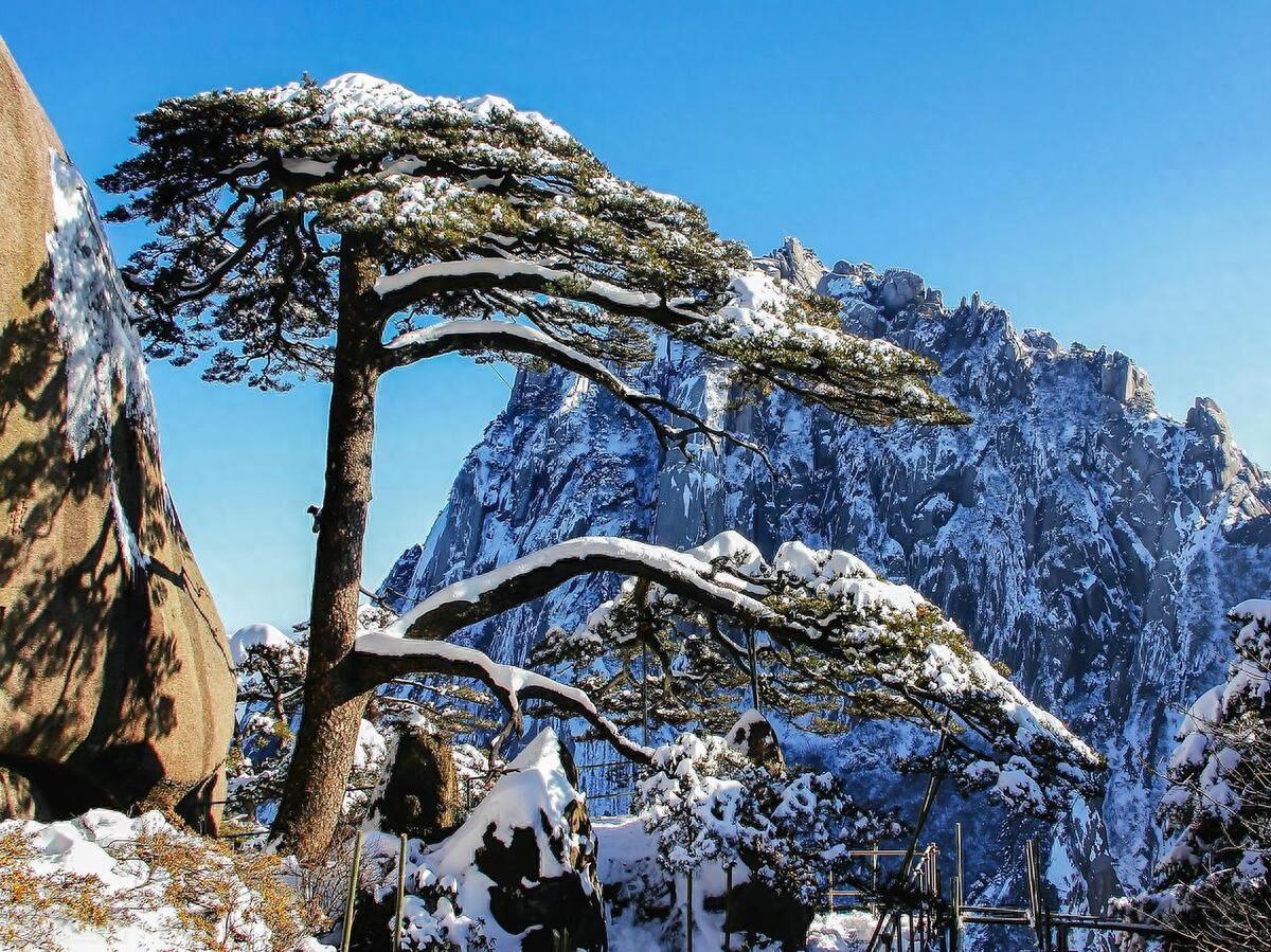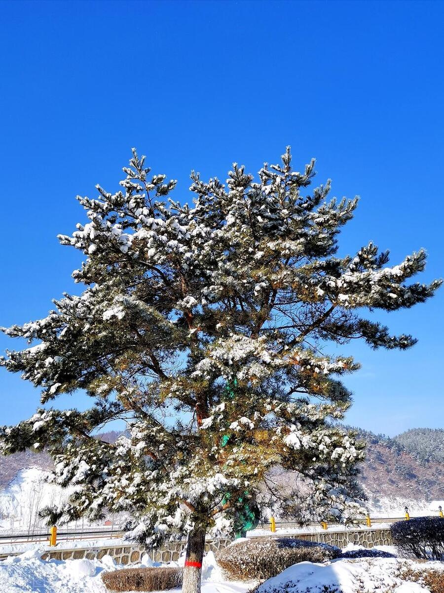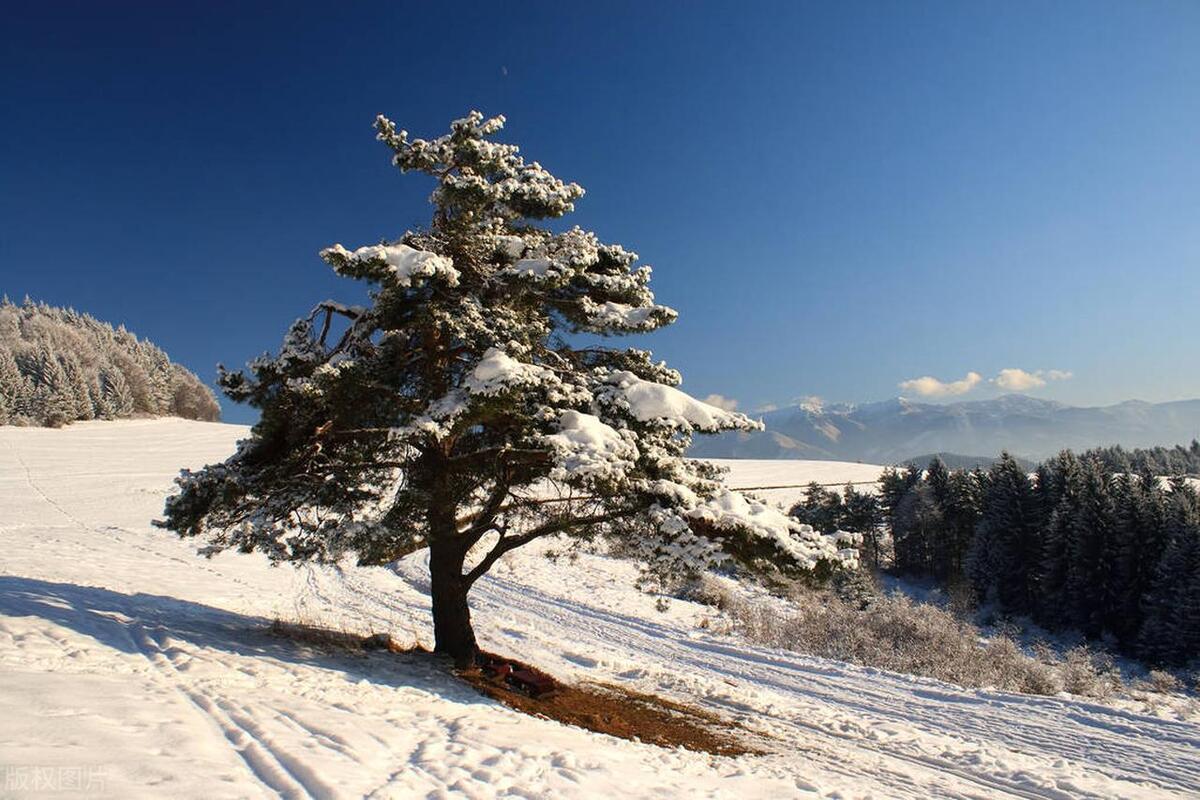 風霜雨雪撼青松,高潔品格抗嚴寒。