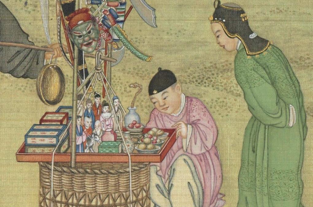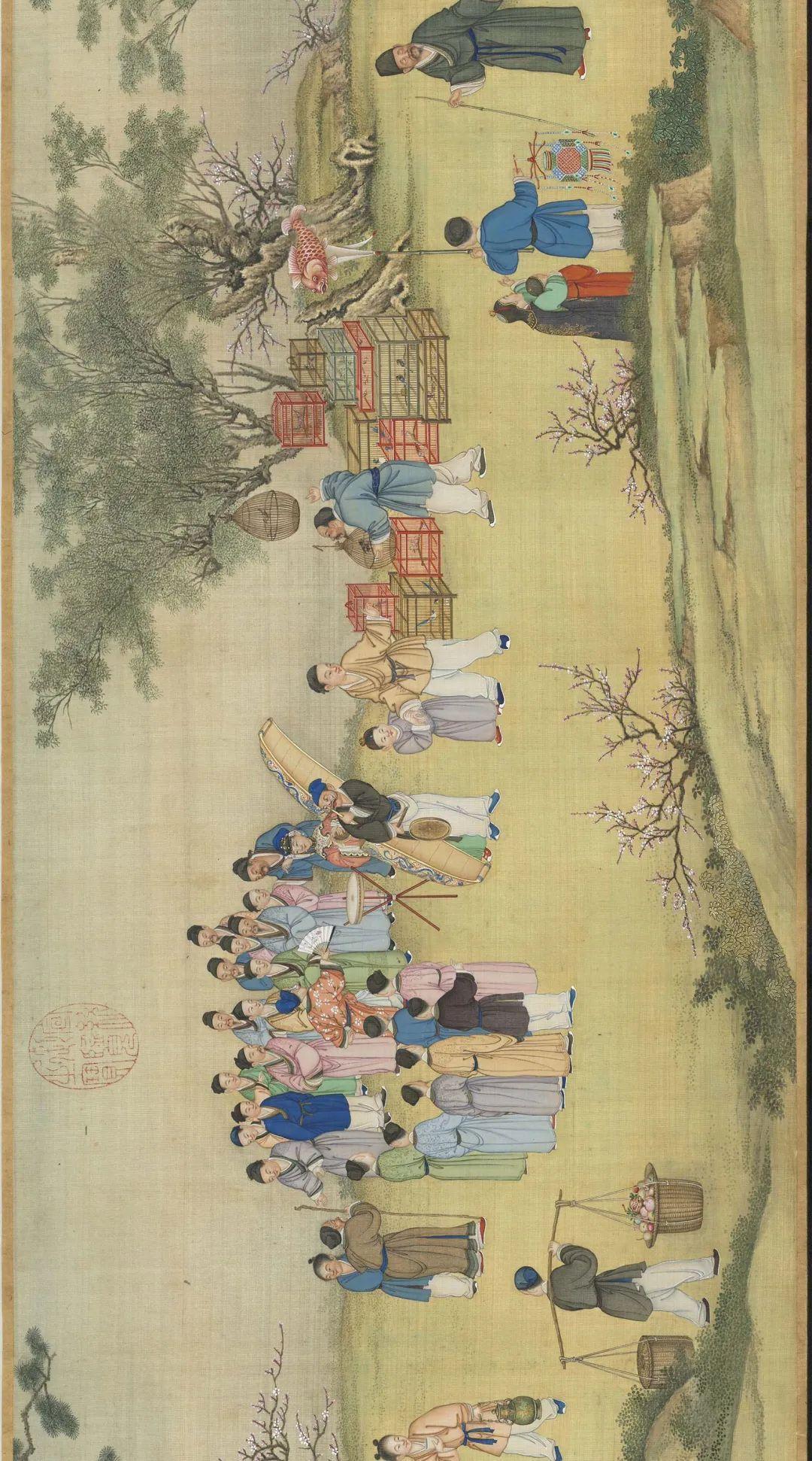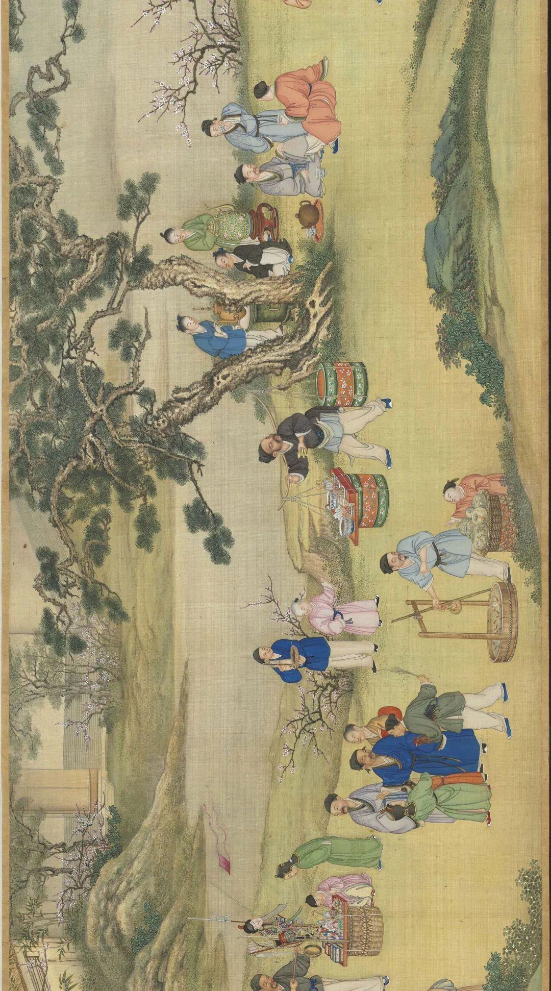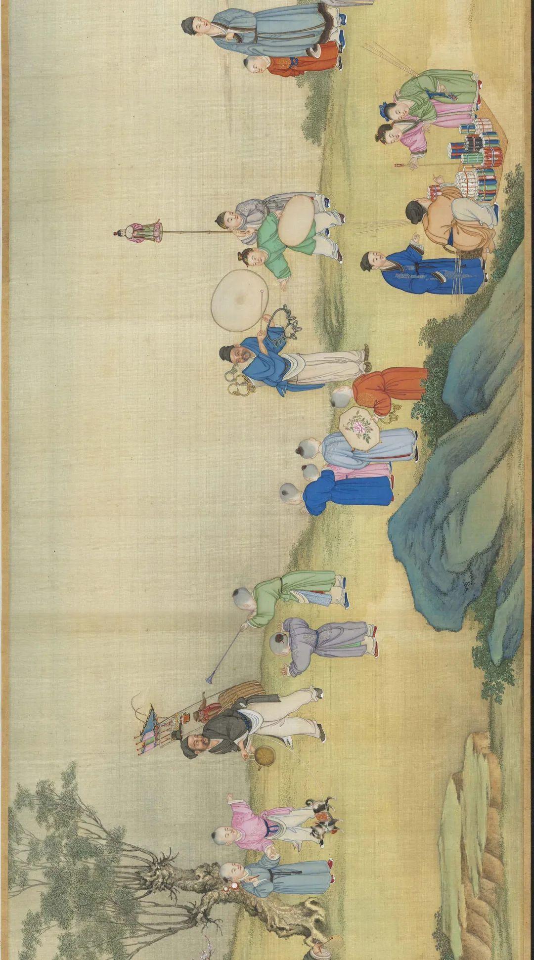 圖|清·丁觀鵬《太平春市圖》,絹本設色,30.3×12.9釐米|現藏於臺北故宮博物院
