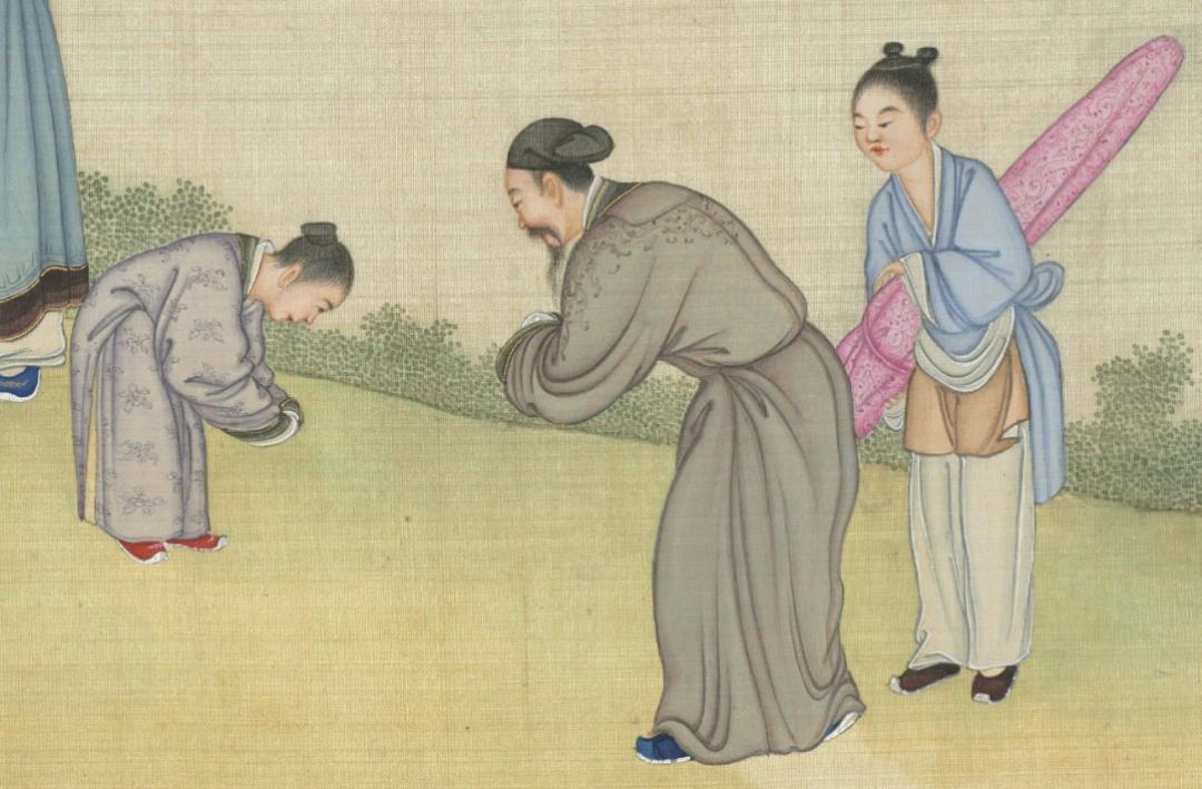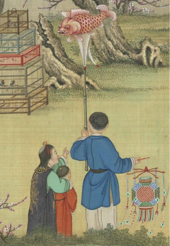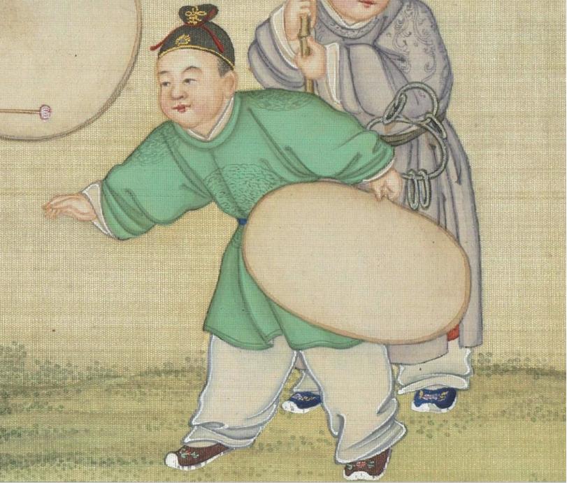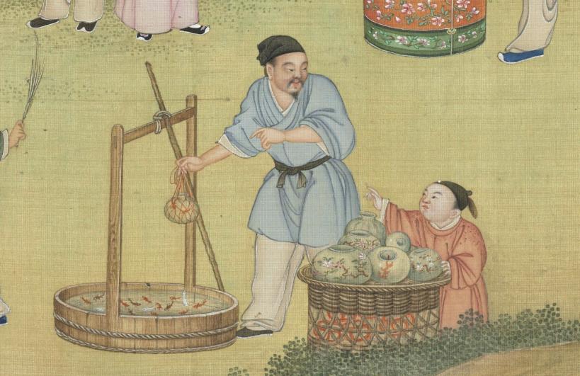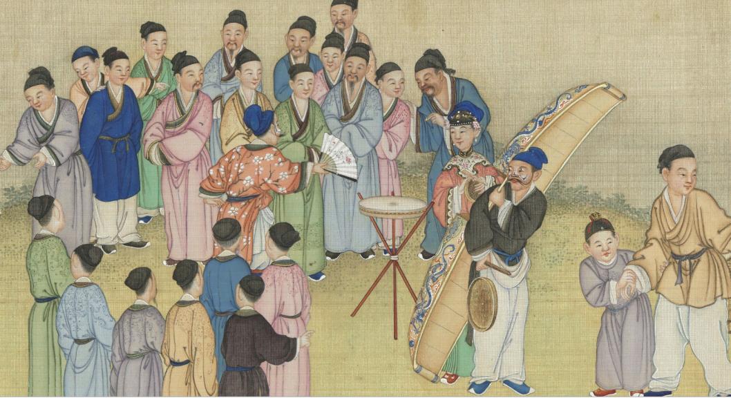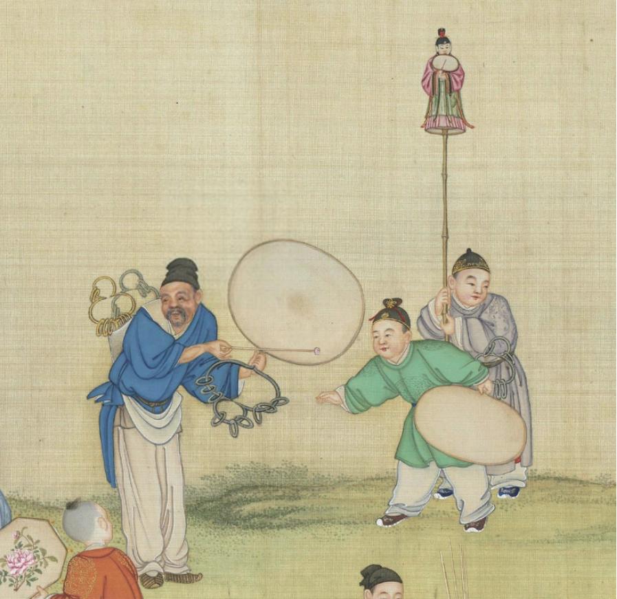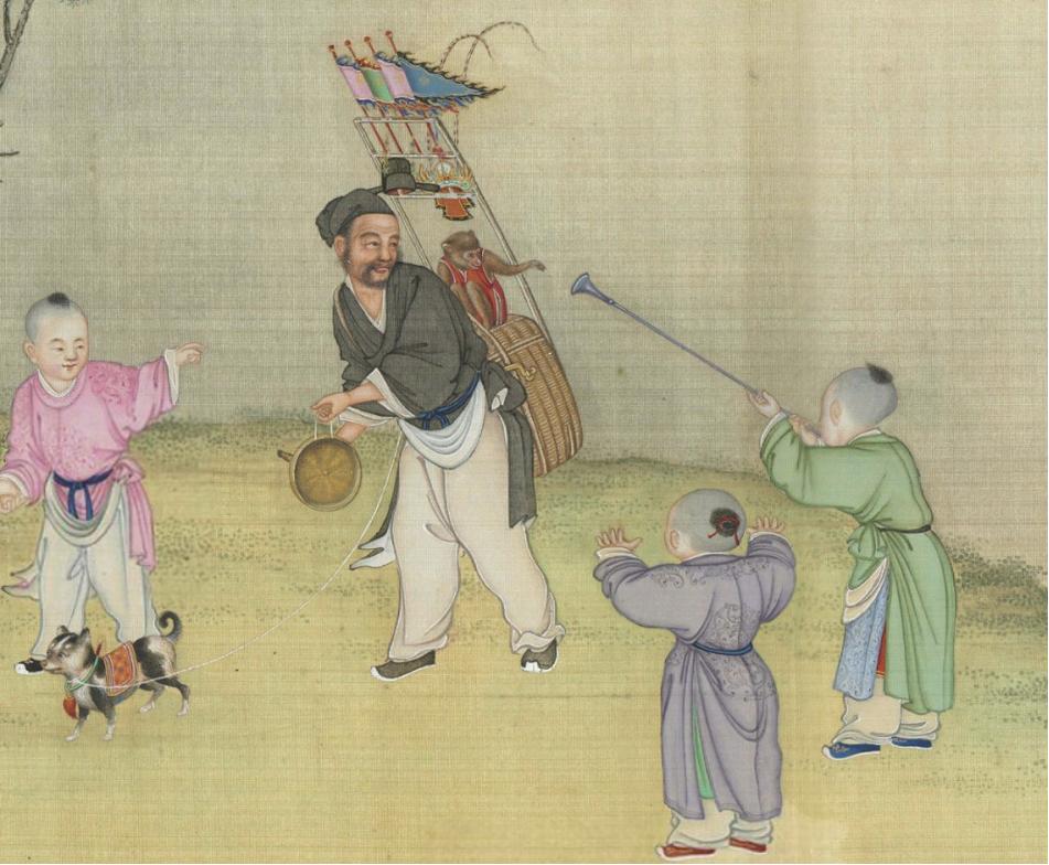 圖|清·丁觀鵬《太平春市圖》,絹本設色,30.3×12.9釐米|現藏於臺北故宮博物院
