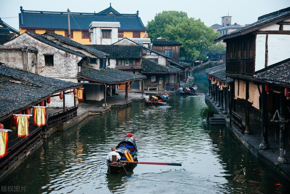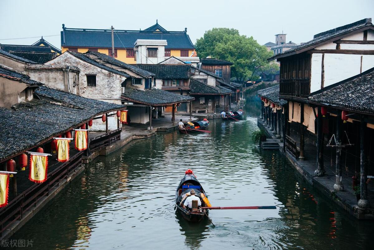 江南水鄉烏篷船,搖櫓穿巷聽雨眠。