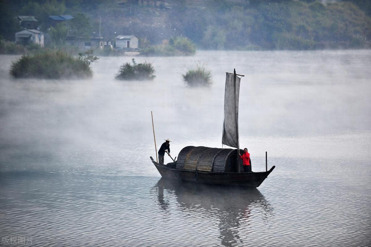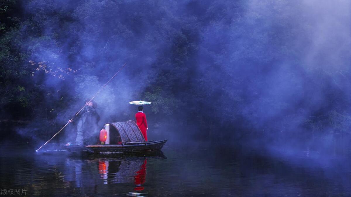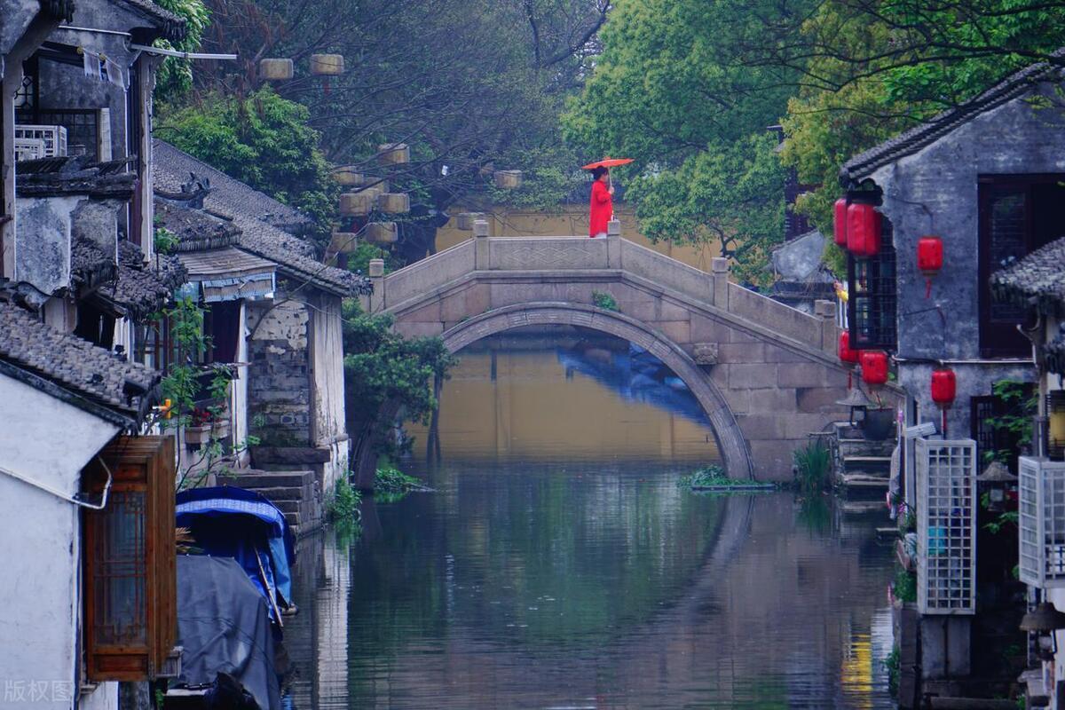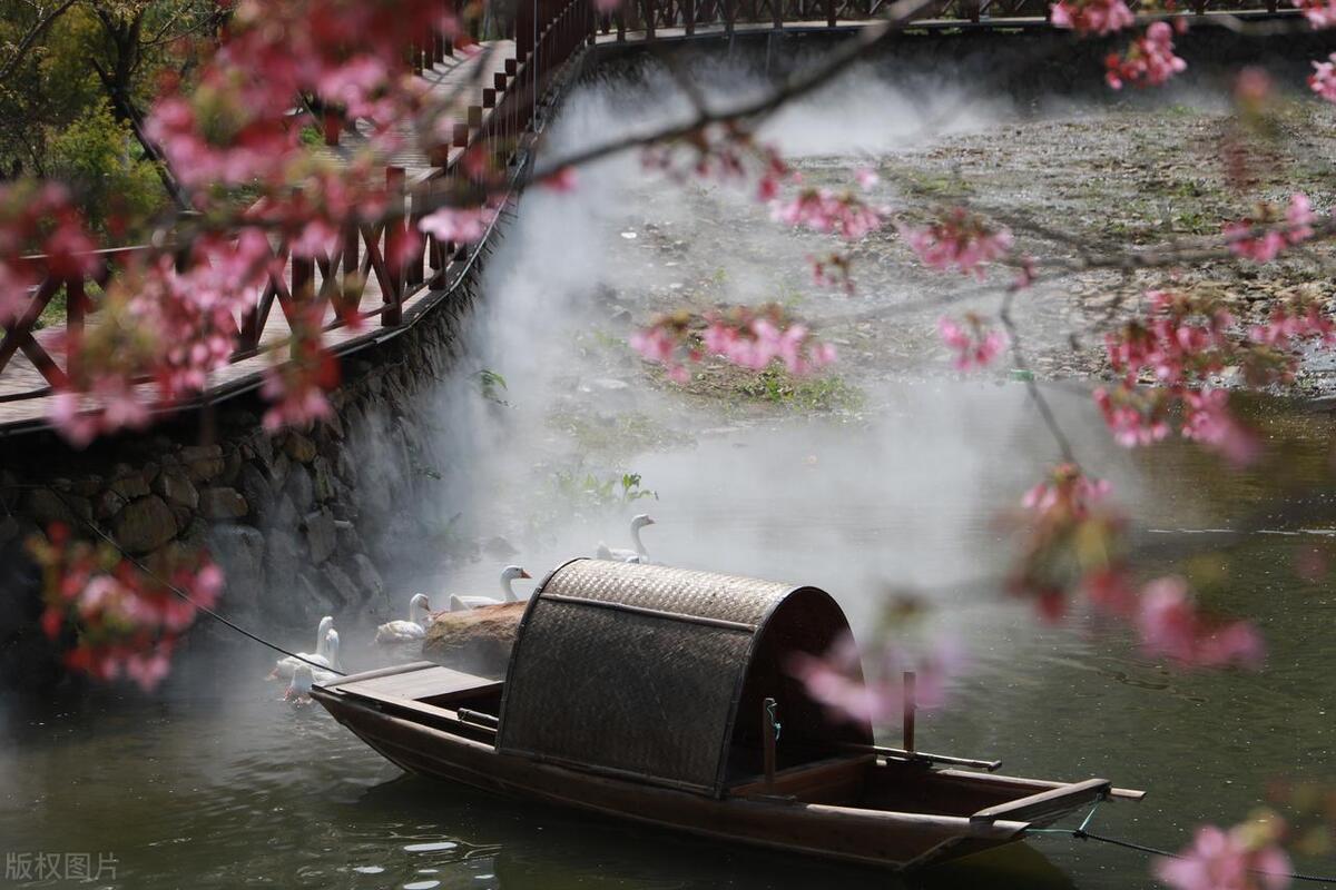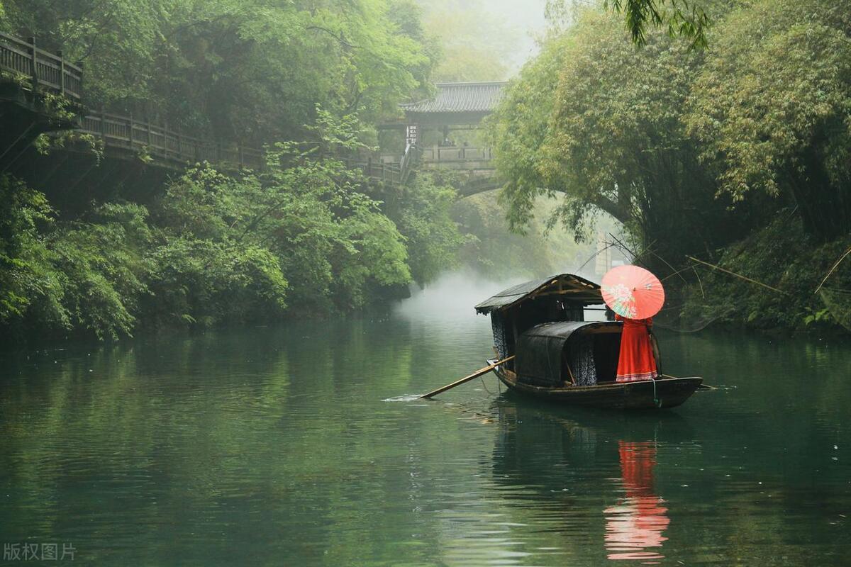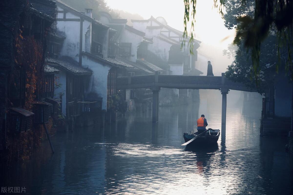 一幅淡彩水墨畫,煙雨朦朧醉江南。