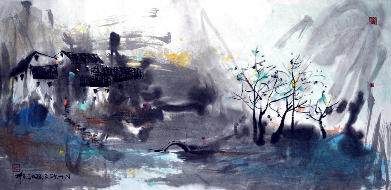 用水墨畫闡述一種思想、理念,賦予哲理性的描述,在領悟與意會當中,詮釋文化的經典與崇高。讓哲學思想的表達有着美學的體現,真理與情感的結合,是那麼的柔情似水滋潤細無聲,詩意化成輕紗漫舞,飄逸在畫中,時而清晰時而朦朧,感受在滌盪中沉澱,感悟在遊離中釋懷。精神領域的愉悅是享受生命的美好,更有感於自然與我們之間那諸多的規律、法則及產生出來的藝術與審美。