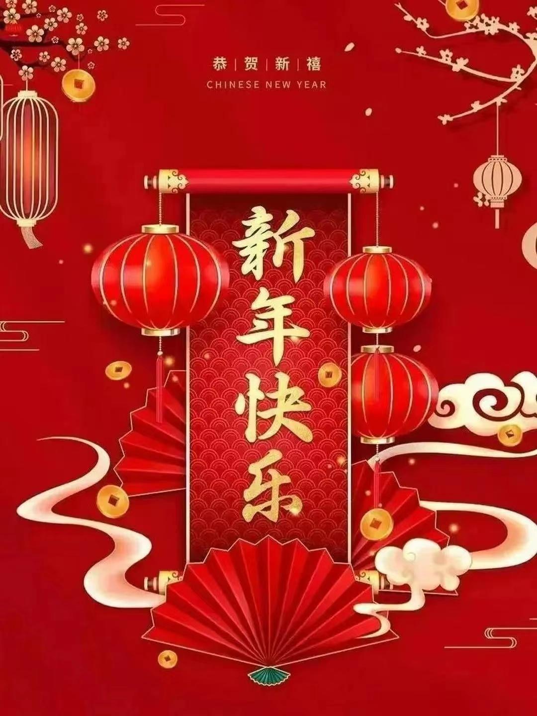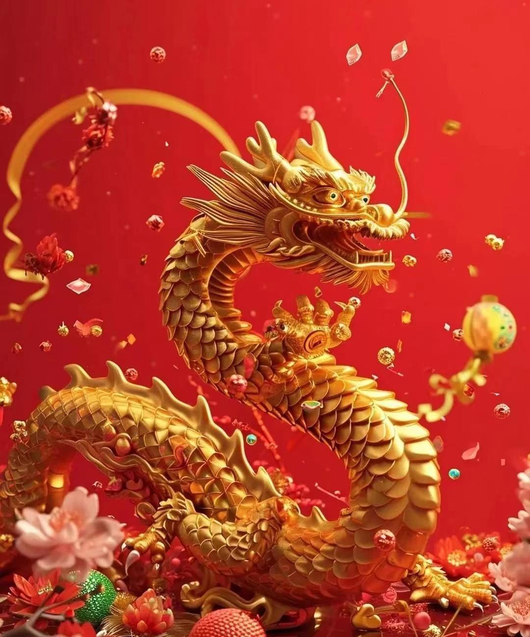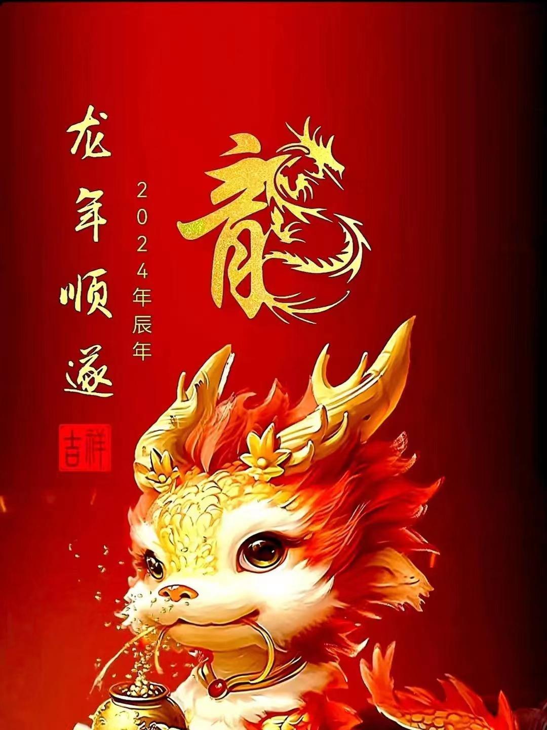 玉兔歲末歡笑去,金龍騰飛舞翩躚。