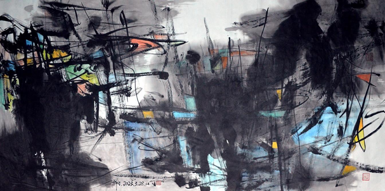 從認識到理解與應用,從大量的實踐體驗中充實理論觀念的空洞,變爲實實在在的階段與昇華,表達的彷彿就是精神、思想、審美的框架與形態,而非繪畫技法應用的過程。像畫不像畫好歹也是畫出來的形態,只不過是應用視覺的點線面表現語言而非繪畫的造型語言。