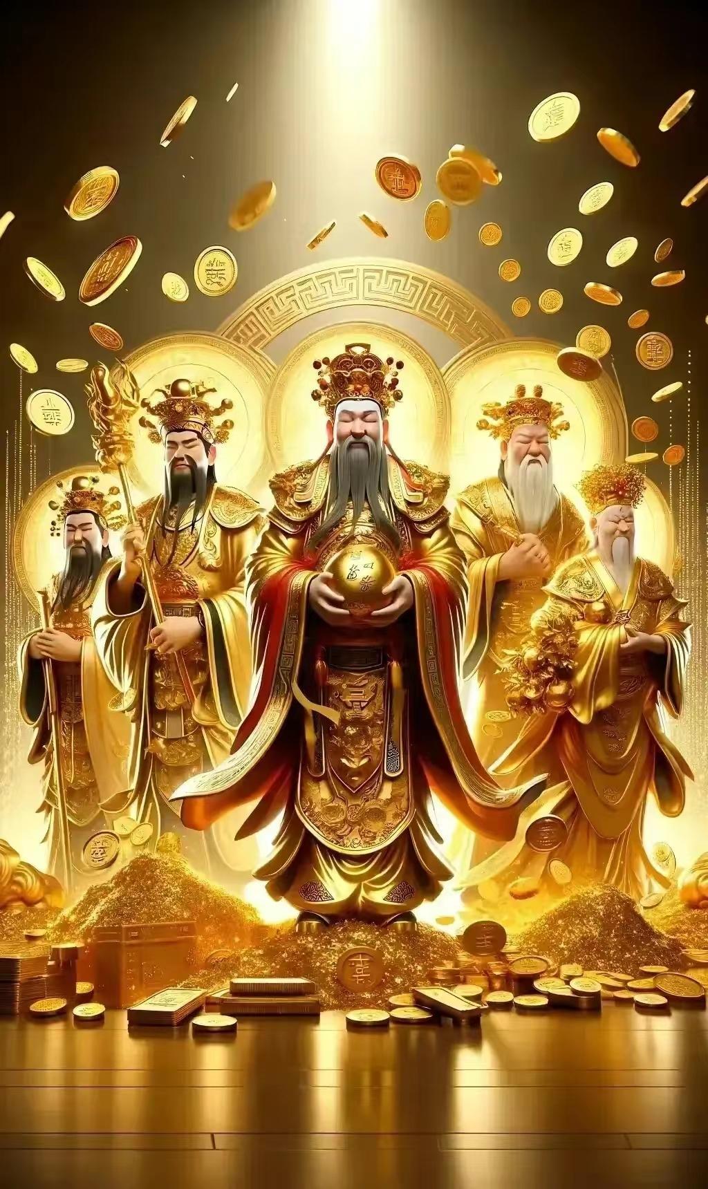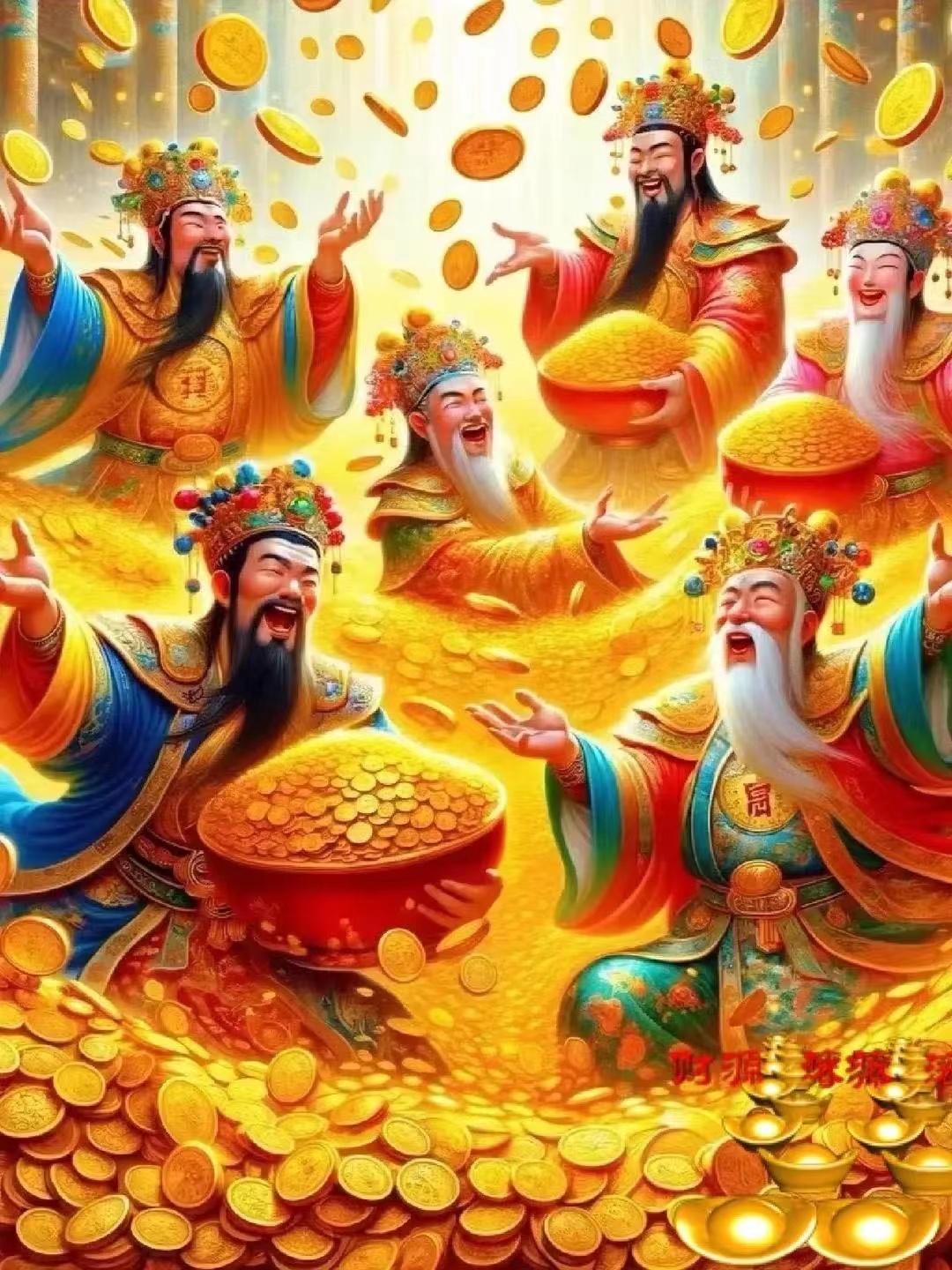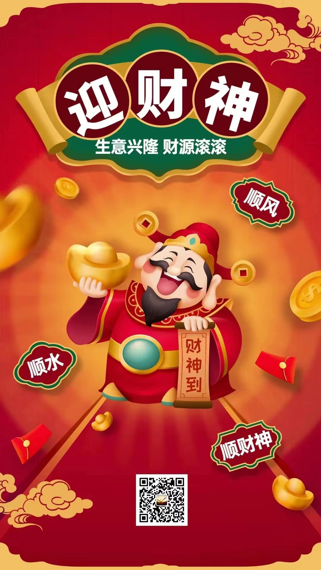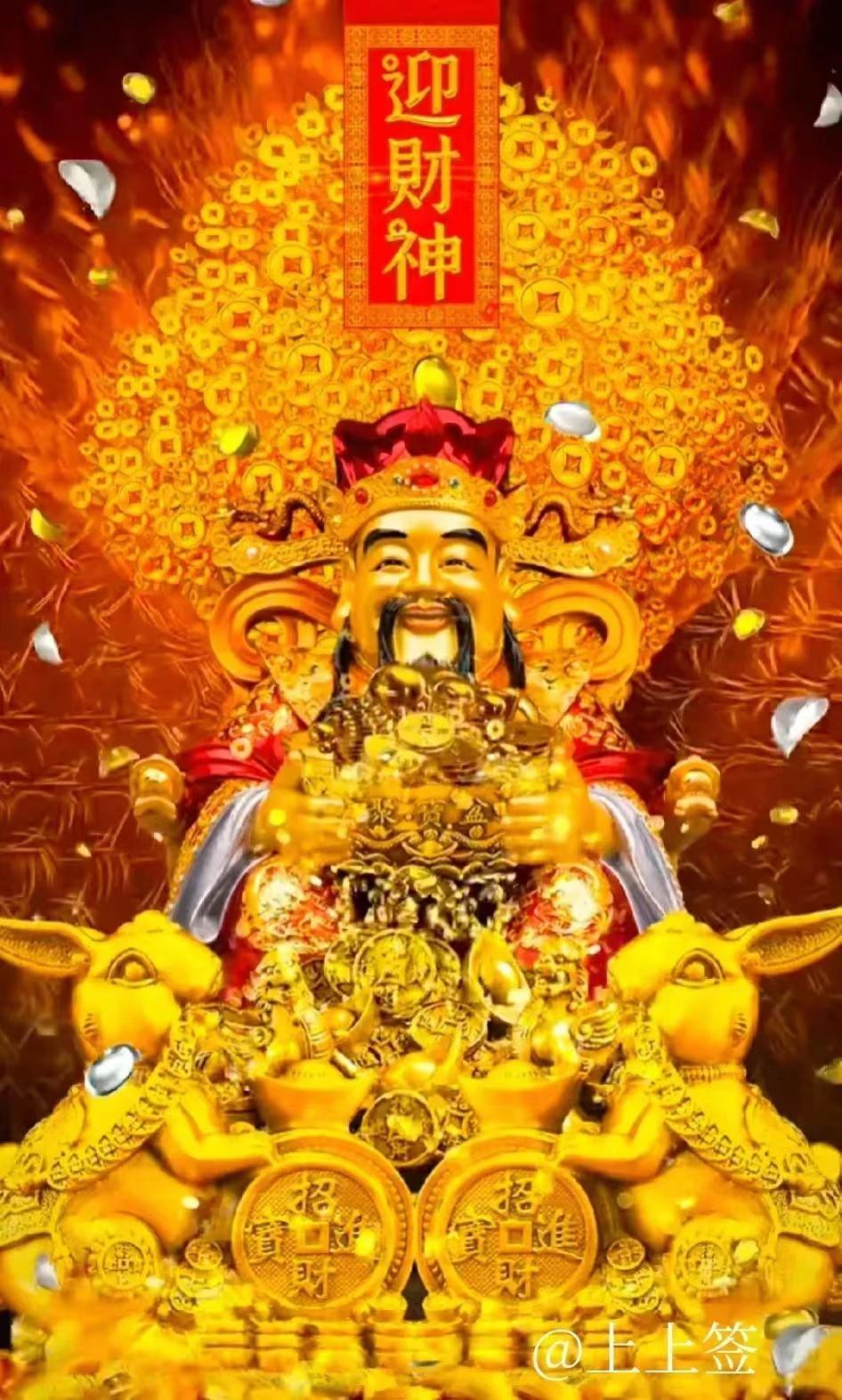 恭迎五路財神:一賜福、二賜財,賜來金銀抱滿懷;三賜吉、四賜祥,賜來如願傍身旁;善門開,笑門開,善因笑果財自來,恭迎五路財神進我家門來!我要發財!願我全家財運亨通,八方來財,財源滾滾。