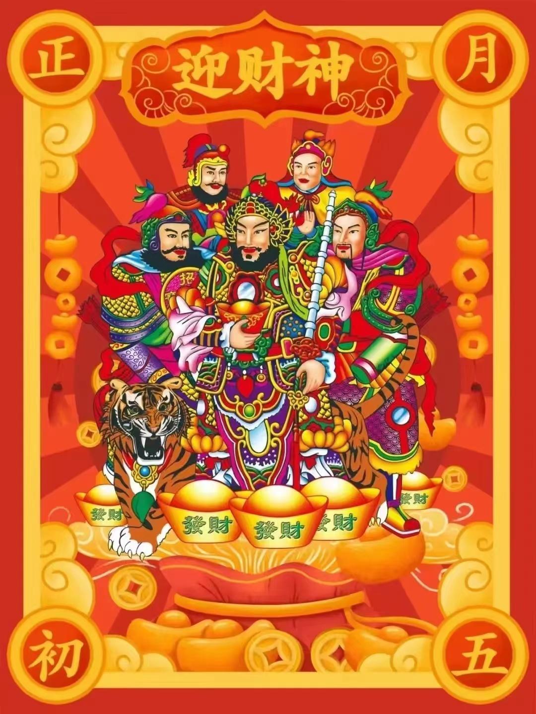 與送窮神相對應的是迎財神。在中國傳統文化中,財神是掌管財富的神靈,人們相信在正月初五這一天迎財神會帶來好運和財富。因此,“破五”這一天,許多商家都會舉行迎財神的儀式,希望能夠在新的一年中獲得財富和好運。除了迎財神之外,人們還會在家中放置一些寓意吉祥如意的東西,比如橘子、花生、糖果等,以示迎接好運的到來。