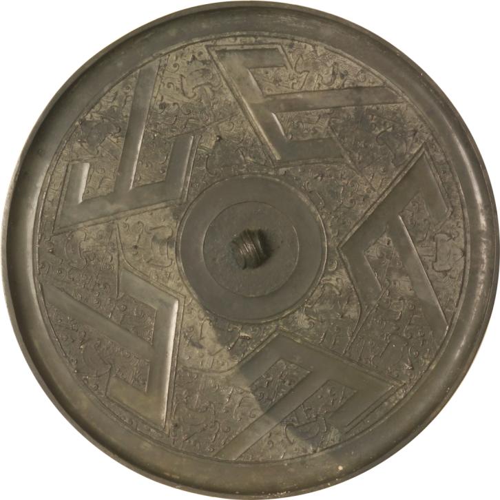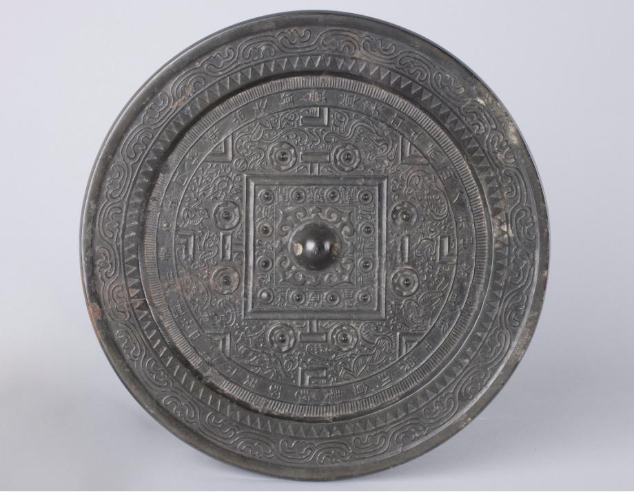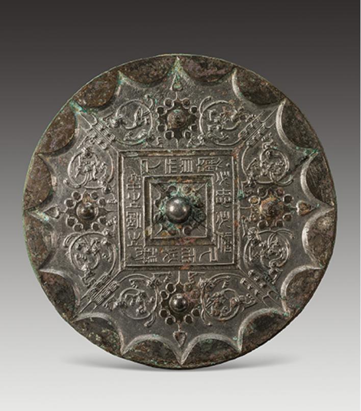 秦漢時期,金屬鑄造工藝蓬勃發展,銅鏡鑄造在漢代迎來了發展的高峯期。西漢早期,銅鏡紋飾仍與戰國類似,只是添加了銘文元素,人們開始在銅鏡背面銘刻祥和的祈願。到西漢中期,銅鏡紋飾更加豐富多彩,銅鏡在映影之外,也承載了更多消災祈福的功用。