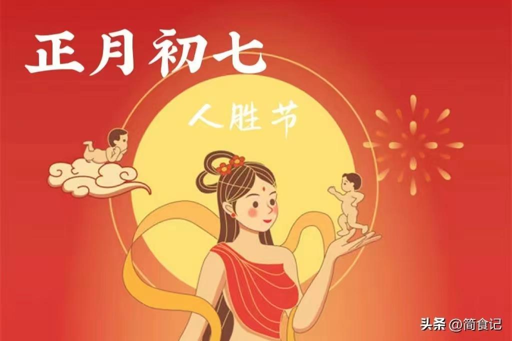 七種蔬菜熬湯羹,麪條纏歲人壽長。