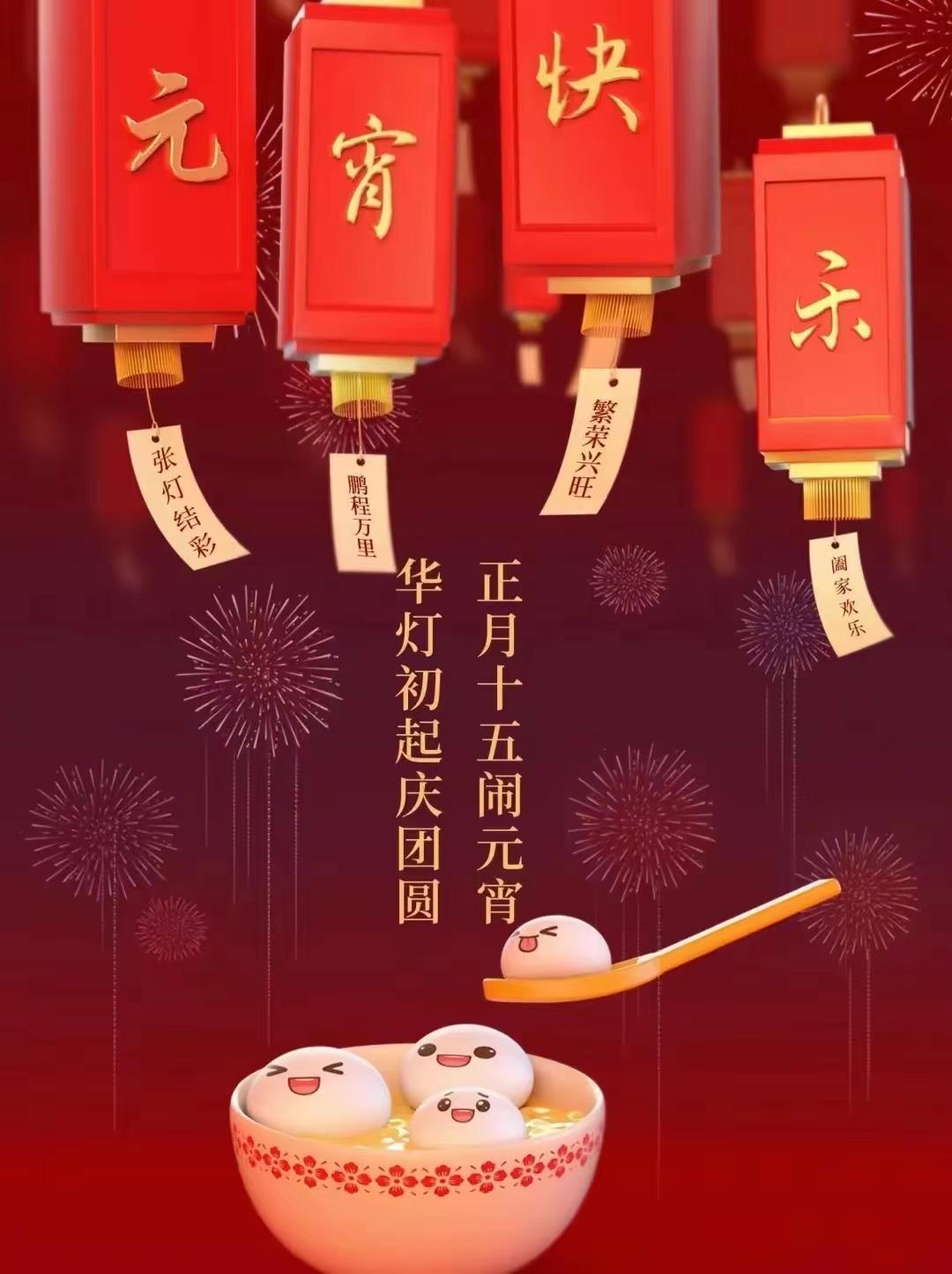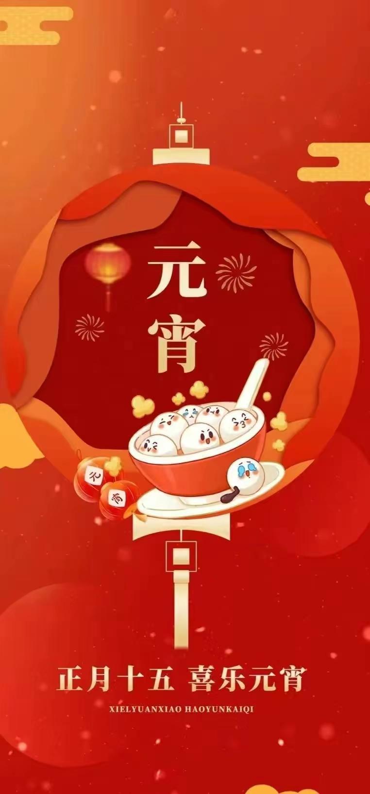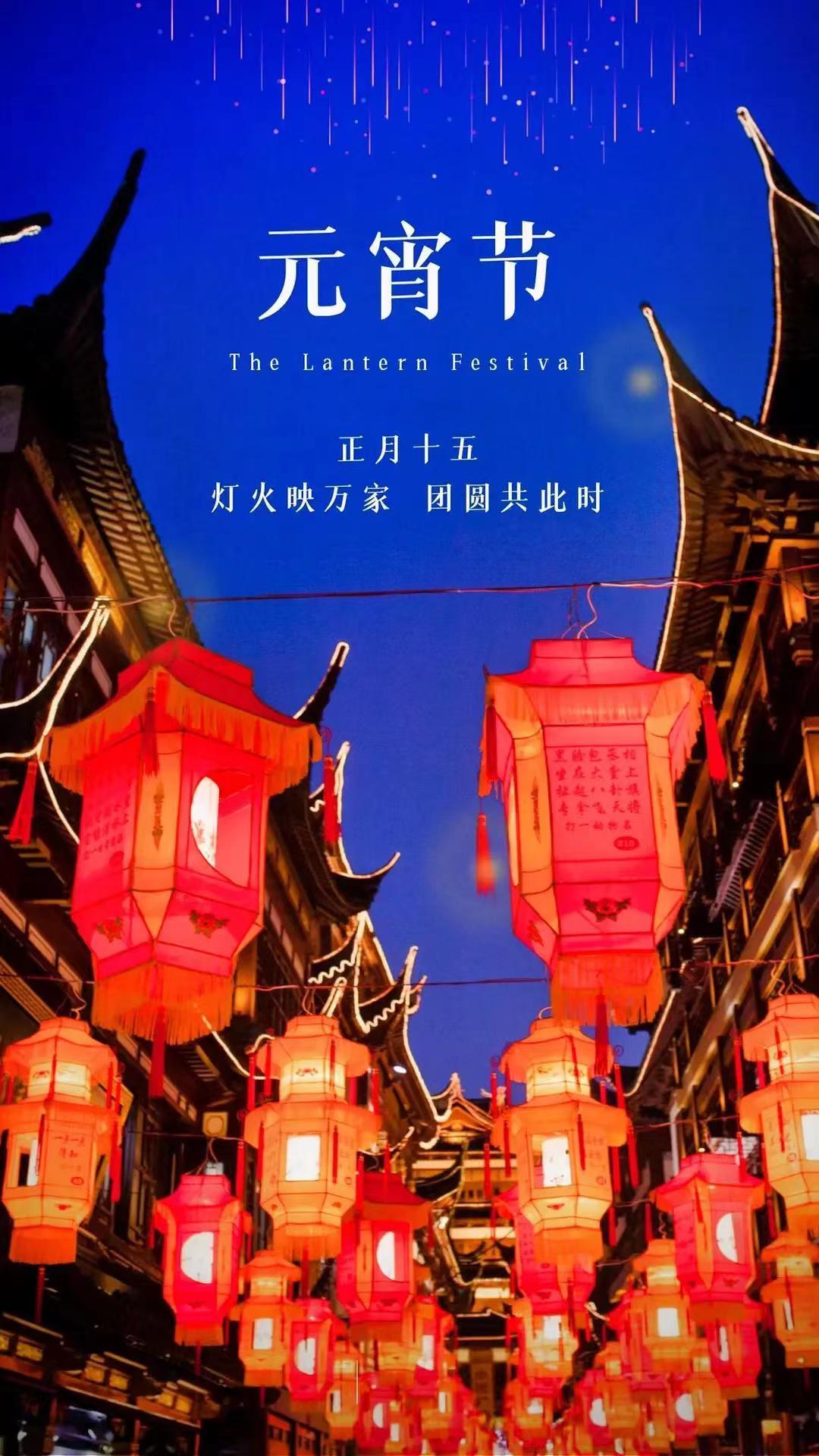 元宵節,又稱上元節、元夜、燈節。按中國的傳統,在這個皓月高懸的夜晚,人們要點起彩燈萬盞,以示慶賀。出門賞月、燃燈放焰、喜猜燈謎、共喫元宵,閤家團聚、同慶佳節,其樂融融。相傳,漢汶帝(前179-前157年)爲慶祝周勃於正月十五勘平諸呂之亂,每逢此夜,必出宮遊玩,與民同樂,在古代,夜同宵,正月又稱元月,漢文帝就將正月十五定爲元宵節,這一夜就叫元宵。司馬遷創建《太初曆》,將元宵節列爲重大節日。到了隋、唐、宋等朝代時,這個節日更是盛極- -時。《隋書音樂志》 日:“每當正月,萬國來朝,留至十五日於端門外建國門內,綿亙八里,列戲爲戲場”,參加歌舞者足達數萬,從昏達旦,至晦而罷。當隨着社會和時代的變遷,元宵節的風俗習慣早已有了較大的變化,但至今仍是中國傳統節日。