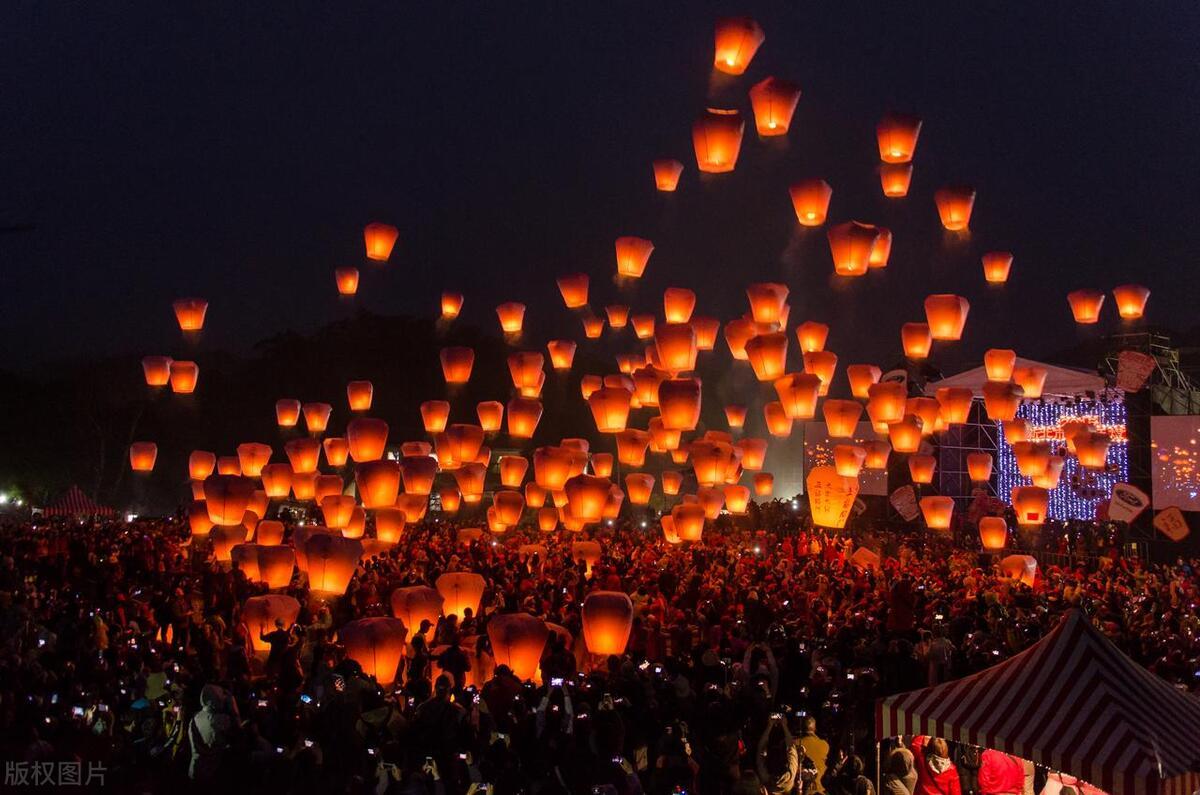 孔燈萬盞飛翔宇,璀璨焰火騰空映。