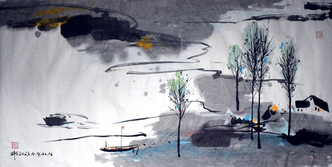 畫面過多的刻畫容易增加視覺感卻削弱了情感的抒發,可抒發情感需要豪放的筆觸,尤其是畫水墨畫創作,氣勢與筆墨融爲一體揮灑激情於宣紙上,形成氣貫長虹之勢,張揚狂野之不凡自我。在藝術領域裏我就是我,個性張揚、飛揚跋扈、放蕩不羈,充分體現出超凡脫俗另類的表現。因而有格局有情調有意境的諸多表現在於筆道精煉到位之中。
