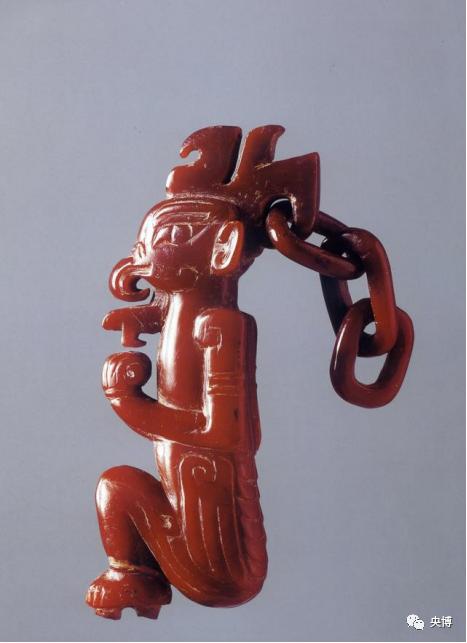 圖|商·活環屈蹲羽人玉佩飾,通高11.1釐米,身高8.4釐米,厚1.5釐米|現藏於江西省博物館