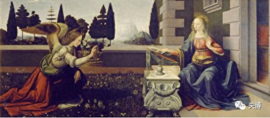 圖|十五世紀,達·芬奇《天使報喜》,板面油畫,90×222釐米|現藏於意大利佛羅倫薩烏菲茲美術館
