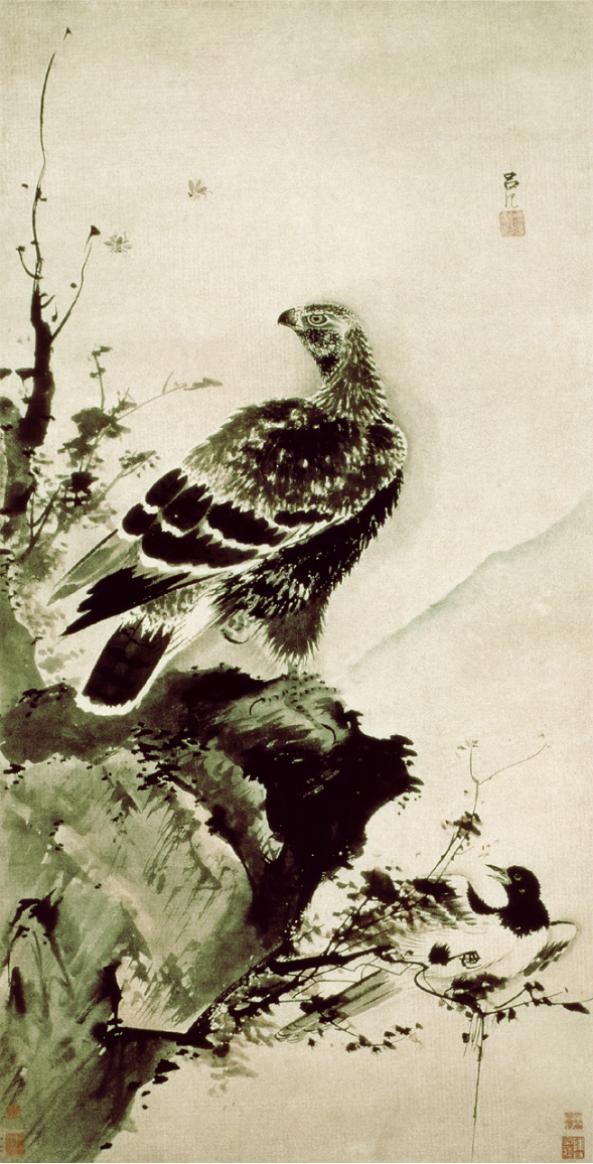 圖|明·呂紀《鷹鵲圖》軸,紙本設色,120.7×61.5釐米| 現藏於故宮博物院