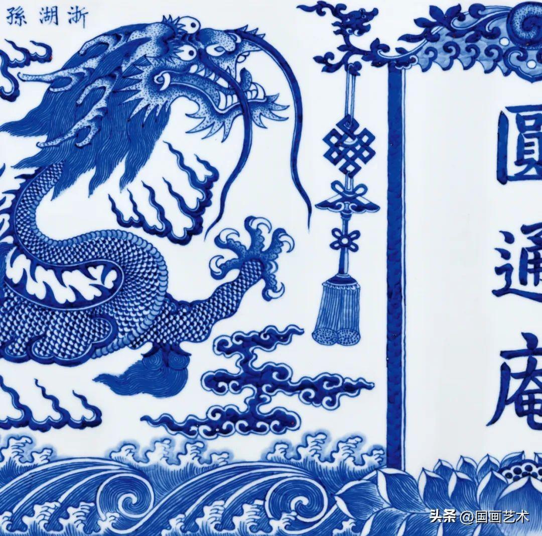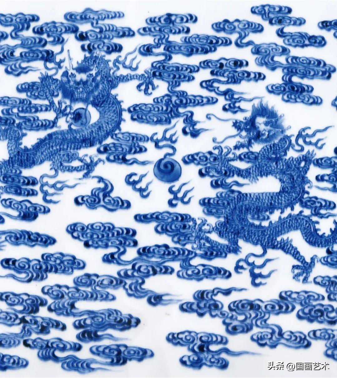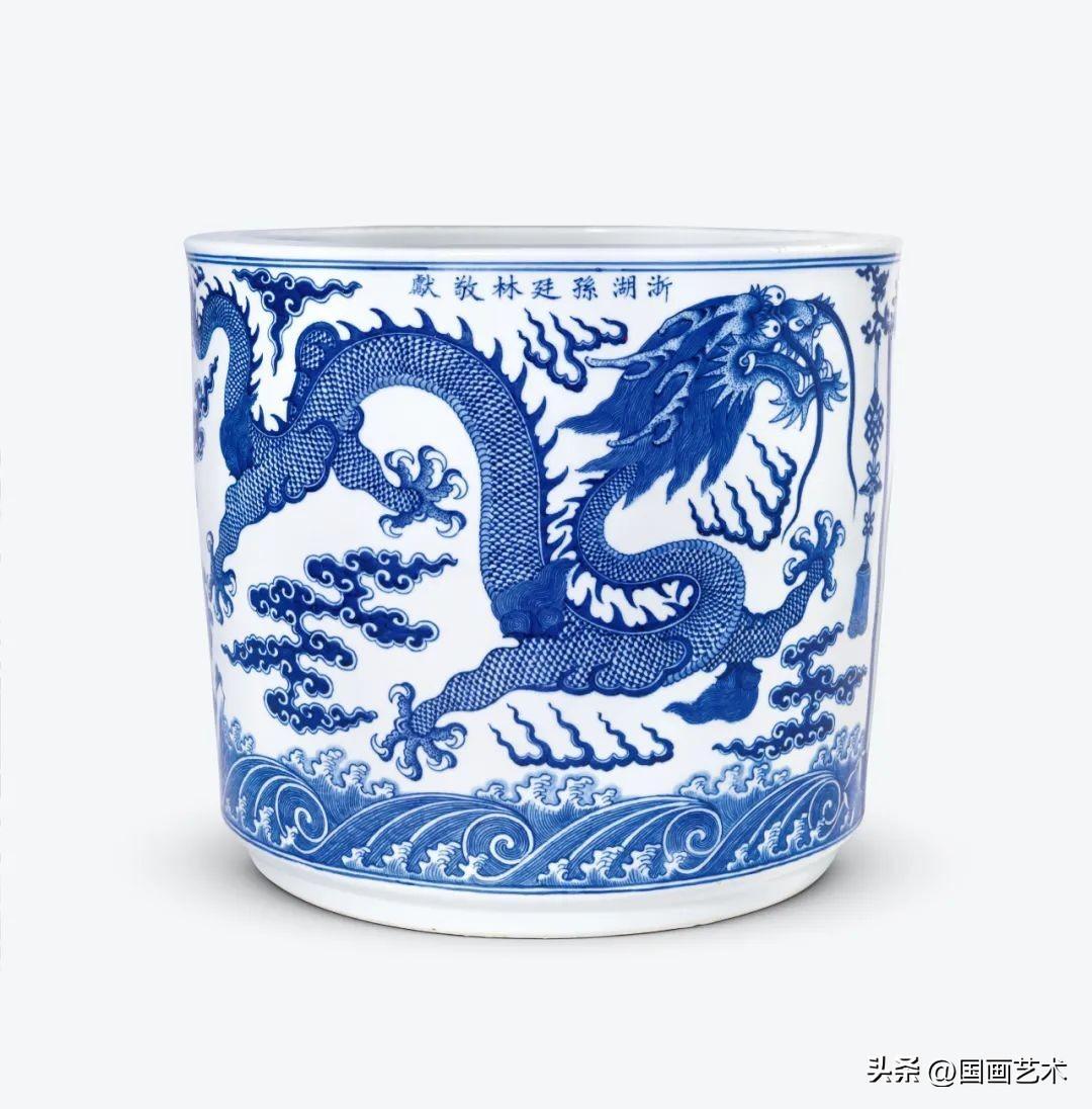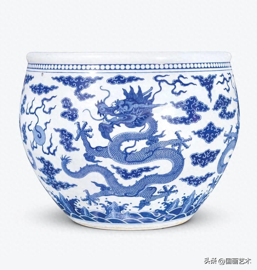 北京故宮博物院坤寧宮薩滿神廚置有兩件乾隆青花游龍戲珠紋大缸,其與本品造型及繪畫題材較爲相似,同時故宮所藏龍缸肩部兩側亦留有與本品相似的圓孔,爲燒造前所置,目的或爲搬運和運輸方便而爲之。另外,從乾隆三年(1738年)命宮廷畫家所繪《陶冶圖冊》“圓琢洋採”一圖中,可以看到與本品頗爲類似之青花龍缸,足見此類龍缸在同期御窯瓷器中的地位。