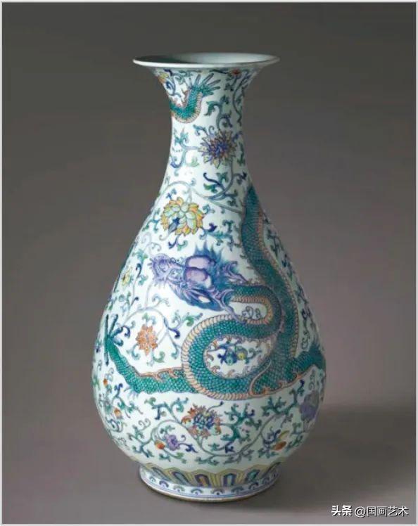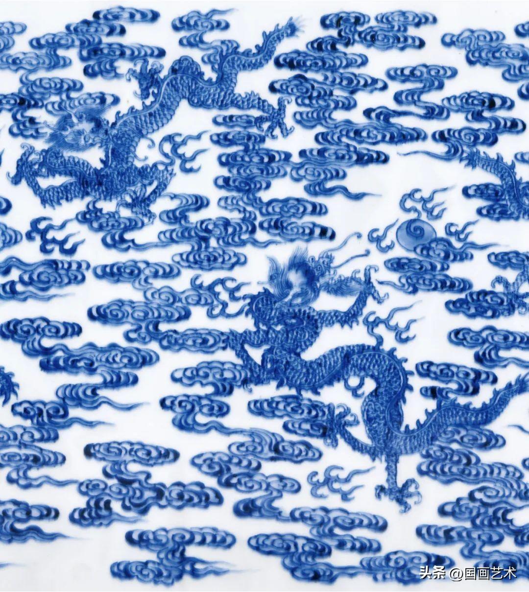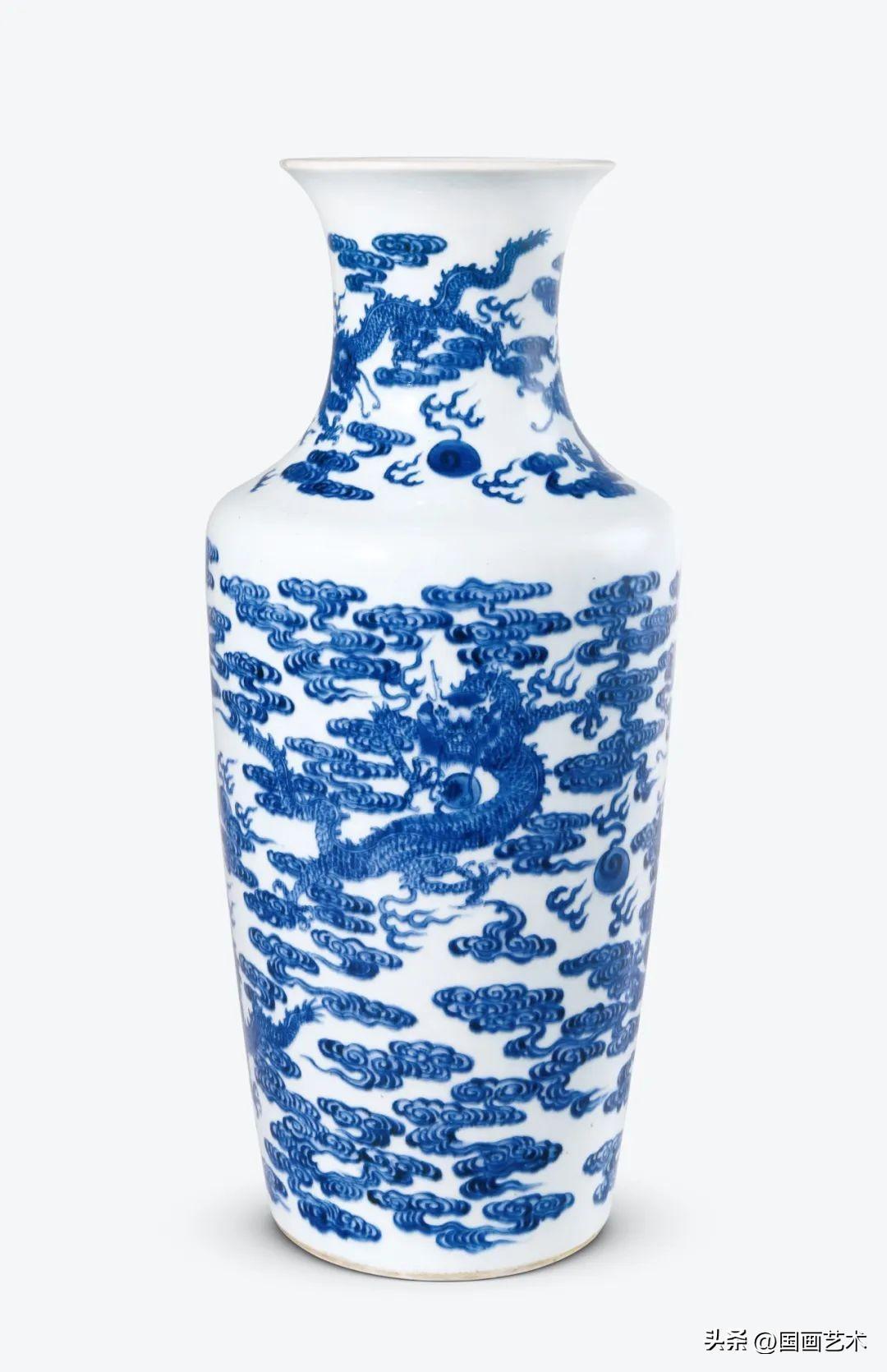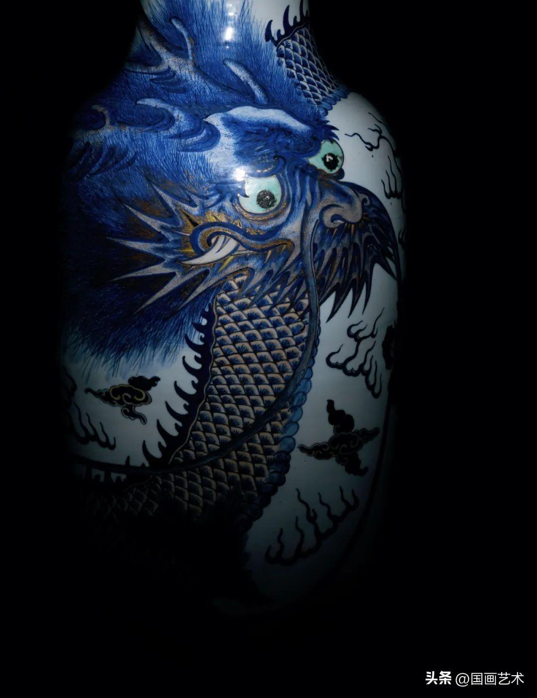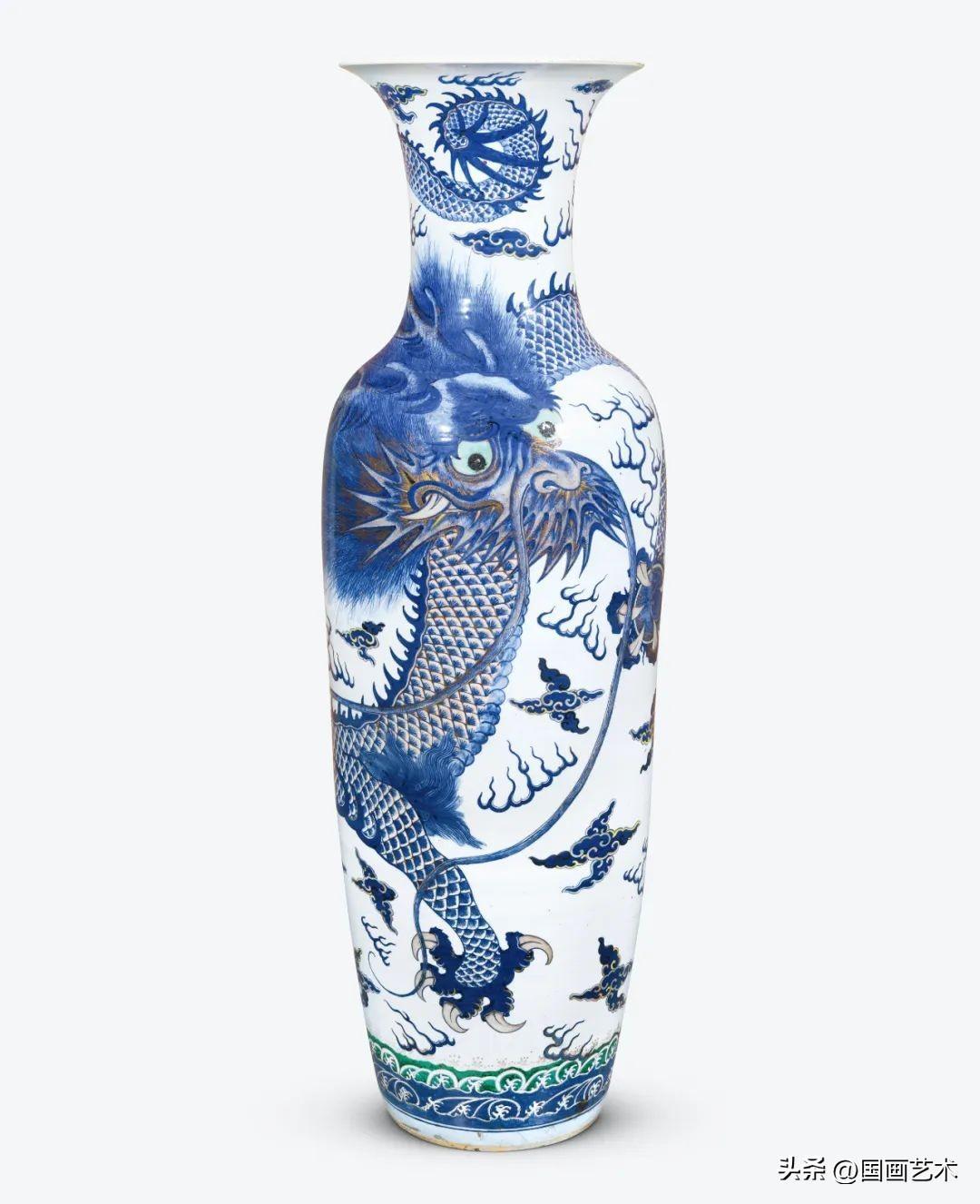 瓶身所繪六龍圖頗合《易經》中所載“雲行雨施,品物流形。大明終始,六位時成,時乘六龍以御天”,混沌雲霧中,萬物伊始,六龍御天。本品對雲霧繚繞的渲染和六龍氣宇軒昂之態,無不透露出繪者深厚的繪畫功力,遠非庸工俗匠所能爲之。其雖不落款,但其挺拔的造型、頗具官氣的題材及裝飾風格判斷,其當爲無款官窯之屬,頗值關注。