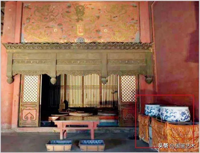 坤寧宮是紫禁城內廷,爲明清兩代皇后的居所,從坤寧宮所置同類型龍缸,推測本品曾經亦或同樣置放於清代帝后居所等重要位置。其檔次和品級之高,堪稱同期作品中的佼佼者,頗值珍視。