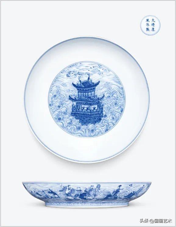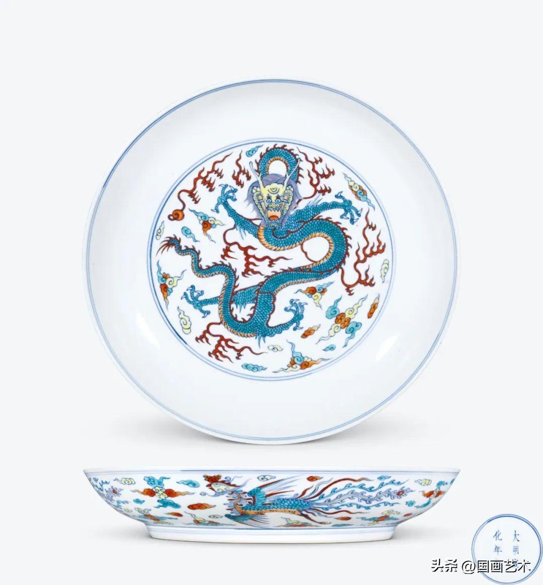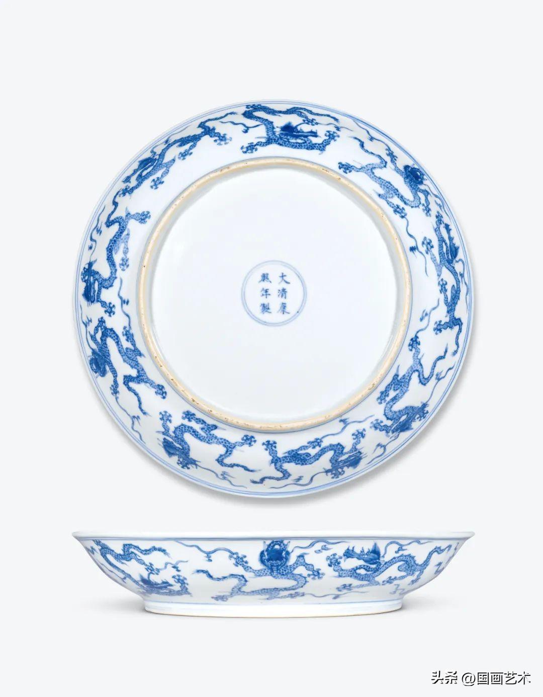 本品在康雍御窯中極爲罕見,根據傳世資料,可知其當有兩個品種。一爲盤心繪正面龍,外壁繪以八蠻進寶圖,見上海博物館館藏。其二爲本品所示。有趣之處在於兩類作品多以“大明萬曆年制”和“大明成化年制”落寄託款。