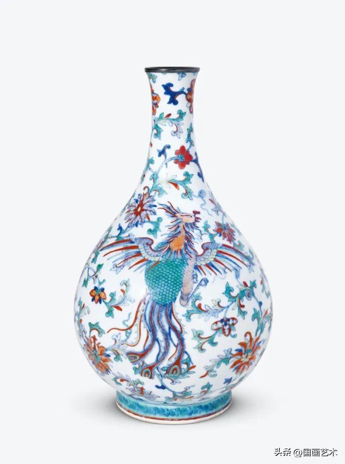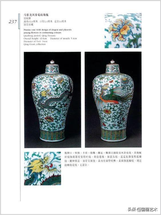 檢索公私收藏,可知法國吉美博物館藏有一件乾隆鬥彩穿花龍鳳紋玉壺春瓶,尺寸較本品略小,但紋飾與本品近似。另見故宮博物院藏乾隆鬥彩龍鳳穿花紋梅瓶,同繪一龍一鳳,且花朵畫法與本品極爲相似,此二件皆無款識,三者可對讀成趣。