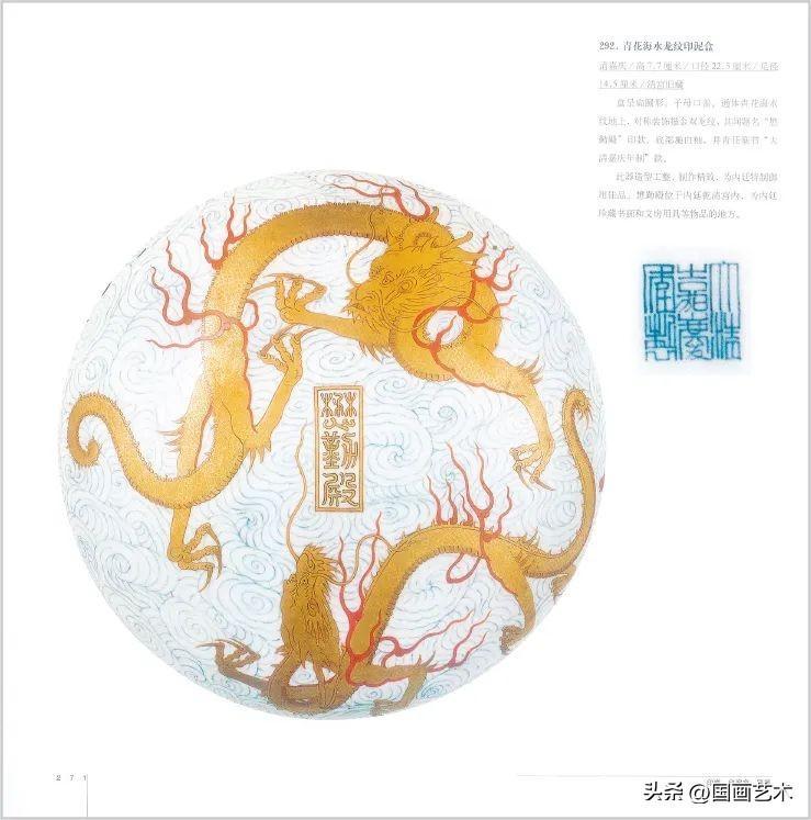 九龍圖又象徵“九五之尊”,是帝王皇室的象徵,很好地體現了龍騰四海的皇家威儀。歷代帝王都將自己比做龍的化身,天地宇宙之間唯我獨尊。因此九龍紋也成爲明代以後官窯歷代沿襲的紋樣之一。清代文獻中稱之爲“九龍呈瑞”或“九龍輯瑞”,嘉慶皇帝對九龍題材更是喜愛有加,在位期間曾多次燒製九龍題材作品。如“青花九龍呈瑞羅漢尊”、“青花九龍呈瑞太極紙垂瓶”、“青花九龍呈瑞太極瓶”等。