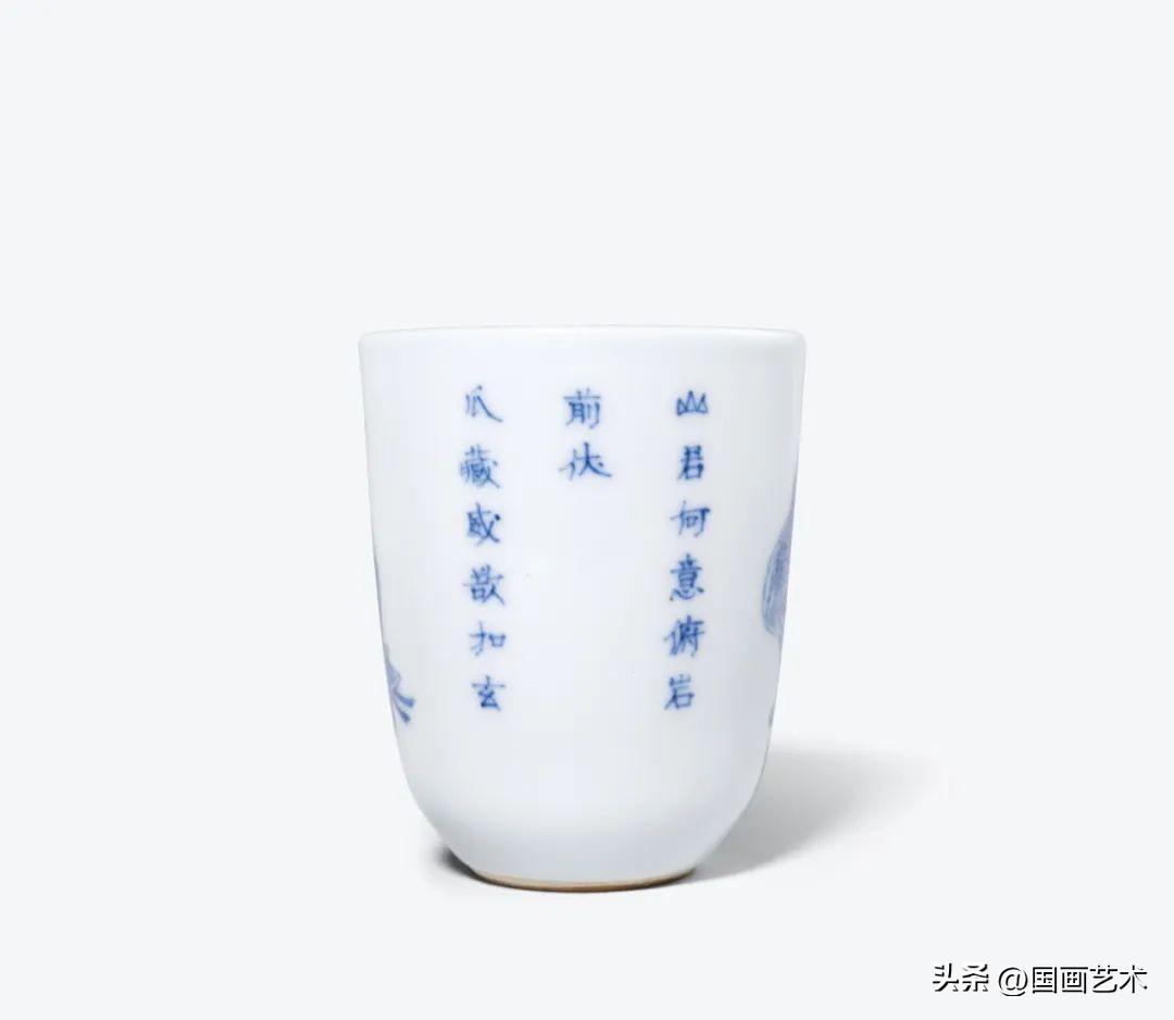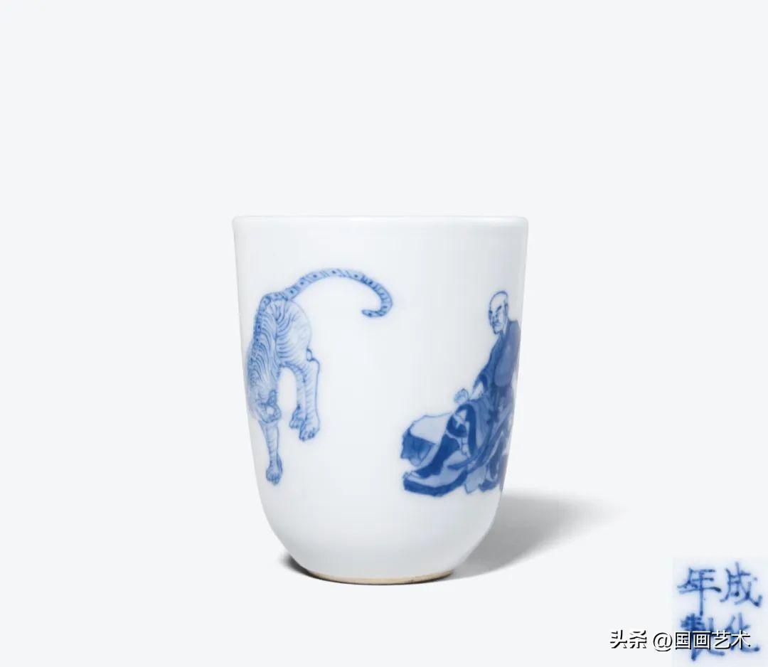 清康熙 青花伏虎羅漢詩文鈴鐺杯