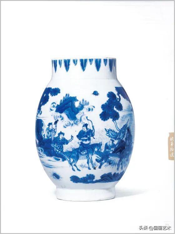 李存孝打虎一折在明末清初瓷器裝飾中並不多見,除本品外,還可見一崇禎青花蓮子罐,描繪亦精絕,與本品可稱雙璧。