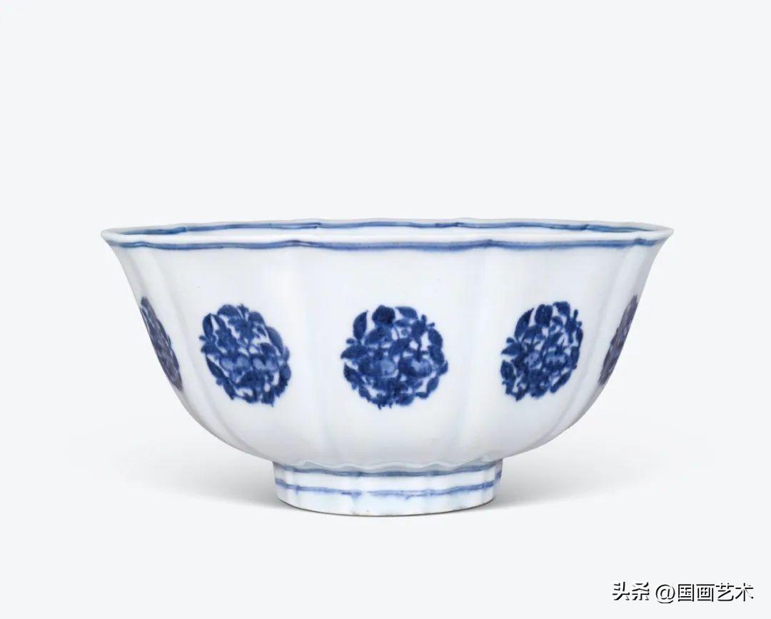 清代早期,制瓷官樣尚未完全確立,故景德鎮御窯廠以清宮舊藏明代官窯器爲範本,燒造御用瓷器,前朝的諸多佳作名品皆成爲其追摹的對象,本品即爲其中佳例。通過觀察其器型及裝飾紋樣及青花呈色,不難發現,其當追慕永宣青花十棱碗製作而成。如香港2017年釋出一件明宣德青花魚藻紋十棱碗,其器型即爲本品追慕之本。