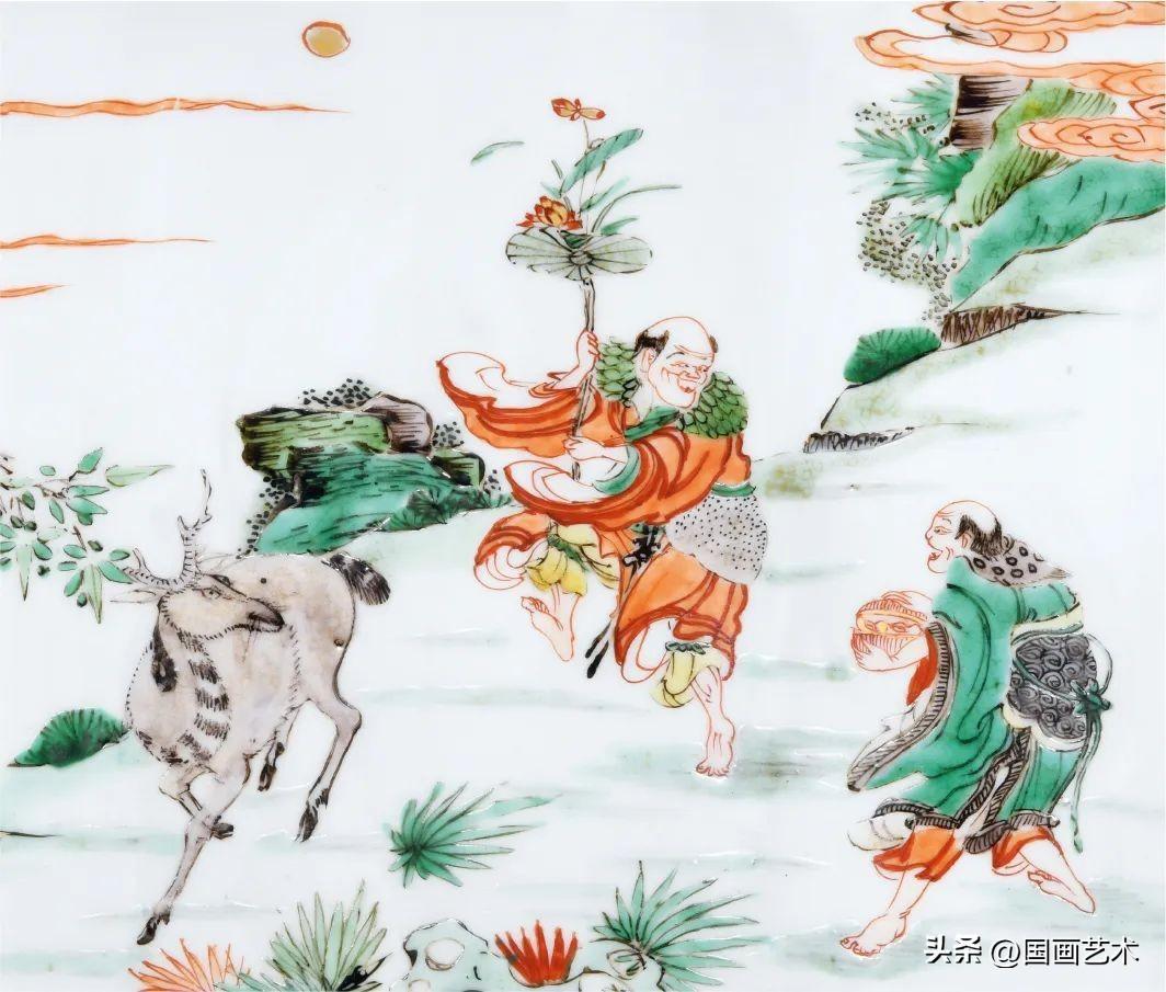 伏虎羅漢,又稱“彌勒尊者”。爲釋迦摩尼坐下十八羅漢之一,位列十八,爲清朝由乾隆皇帝欽定的。相傳其所住寺廟外常有猛虎咆哮,經其投餵飯食而逐漸馴服,並常伴左右。十八羅漢能斷除一切煩惱,達到涅盤境界,不再受生死輪迴之苦,堪受人天供養。瓷器以羅漢爲飾,即取其成萬事、破煩惱之吉祥涵義。