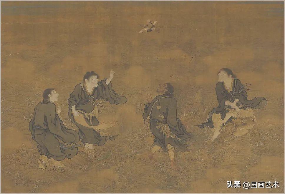 在古代繪畫中,臺北故宮博物院所藏商喜所作《四仙拱壽圖》,應爲“四仙”圖最早的圖樣,較之本品,雖然四仙的具體形象動作,身處環境與本品不盡相同,但“蓬頭”貫穿二者,成爲了辨認“四仙”身份的關鍵。