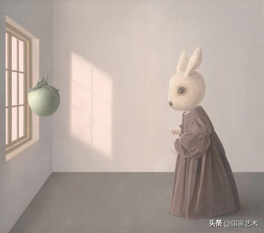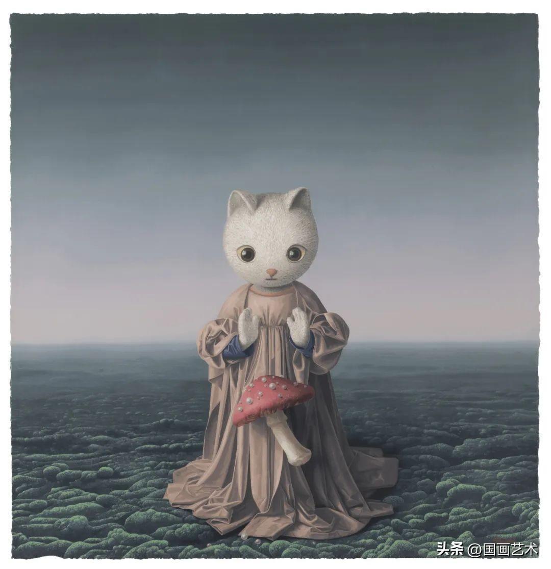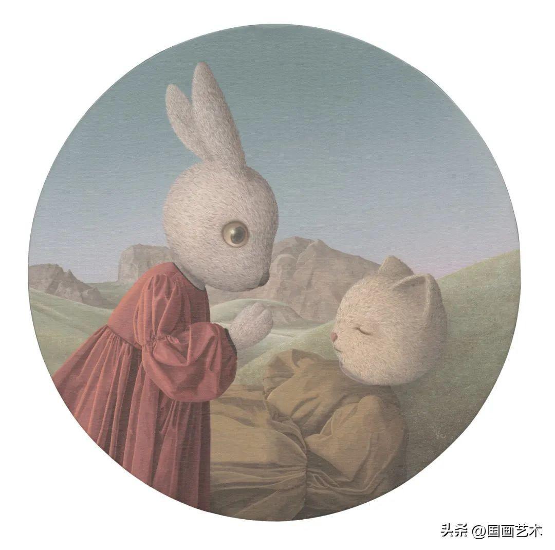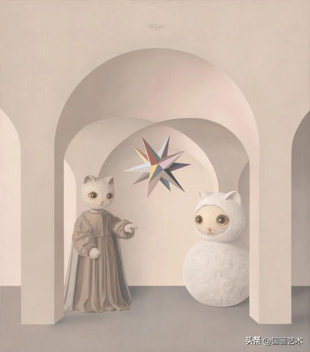 他的作品以賦有擬人化與精神性的貓與兔子爲主角,呈現出安靜、神祕、詩意的畫面氛圍。以當代視角對藝術史的梳理分析與個人審美傾向爲出發點,通過對古典與當代的融合與重建展現了藝術家對時間、精神、表象與本質的思考。