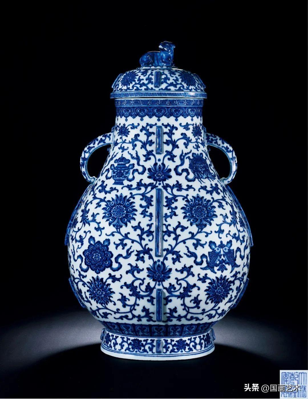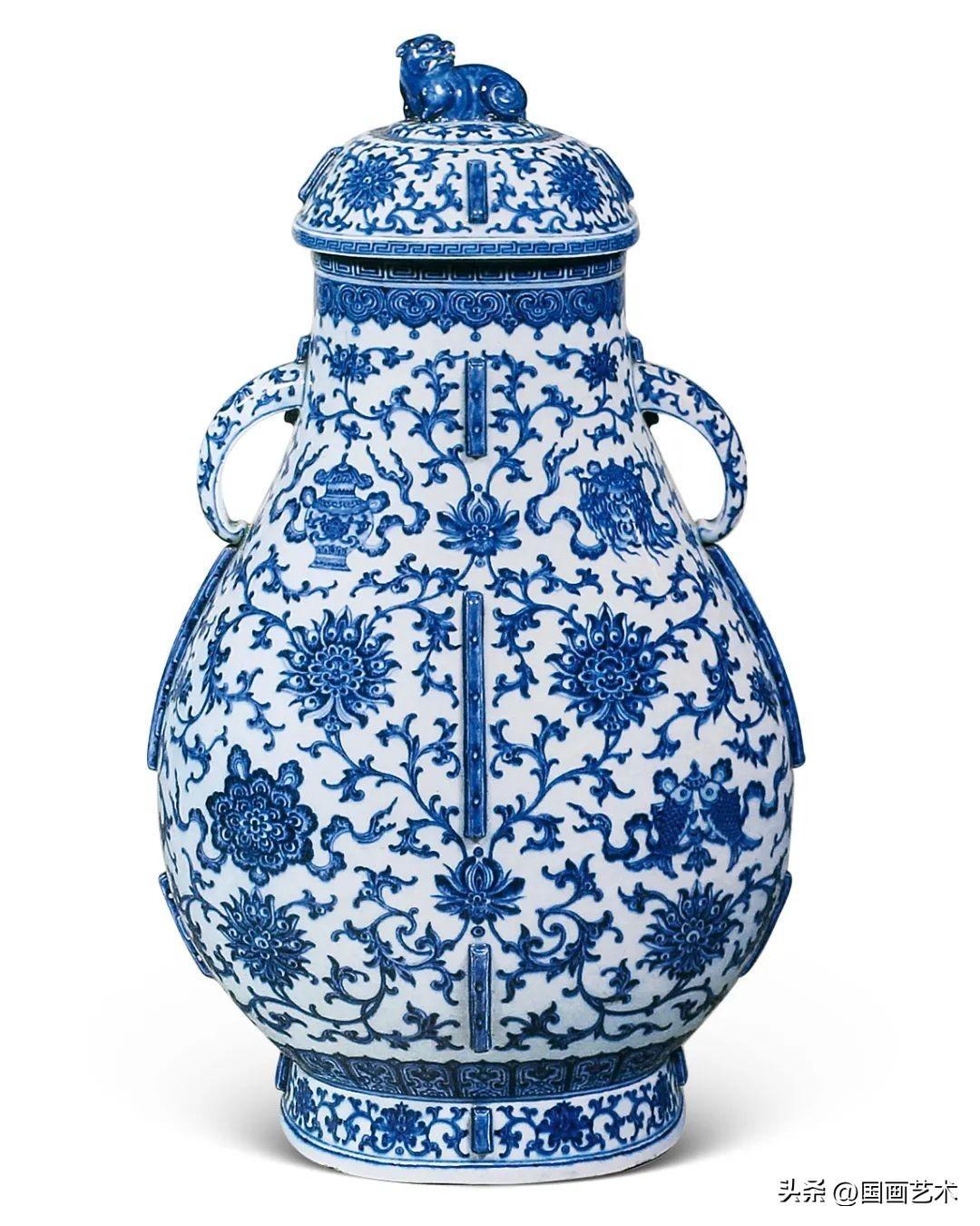 此件蓋壺,尊戰漢青銅器之形制,古樸典雅,雍容壯碩。青花髮色濃郁,紋飾豐富緊湊,線條流暢清晰,畫工自然純熟而富有層次感,爲乾隆朝仿古官窯器中不可多得之佳品。歷經數百年,仍得以保存原蓋,實屬難得。