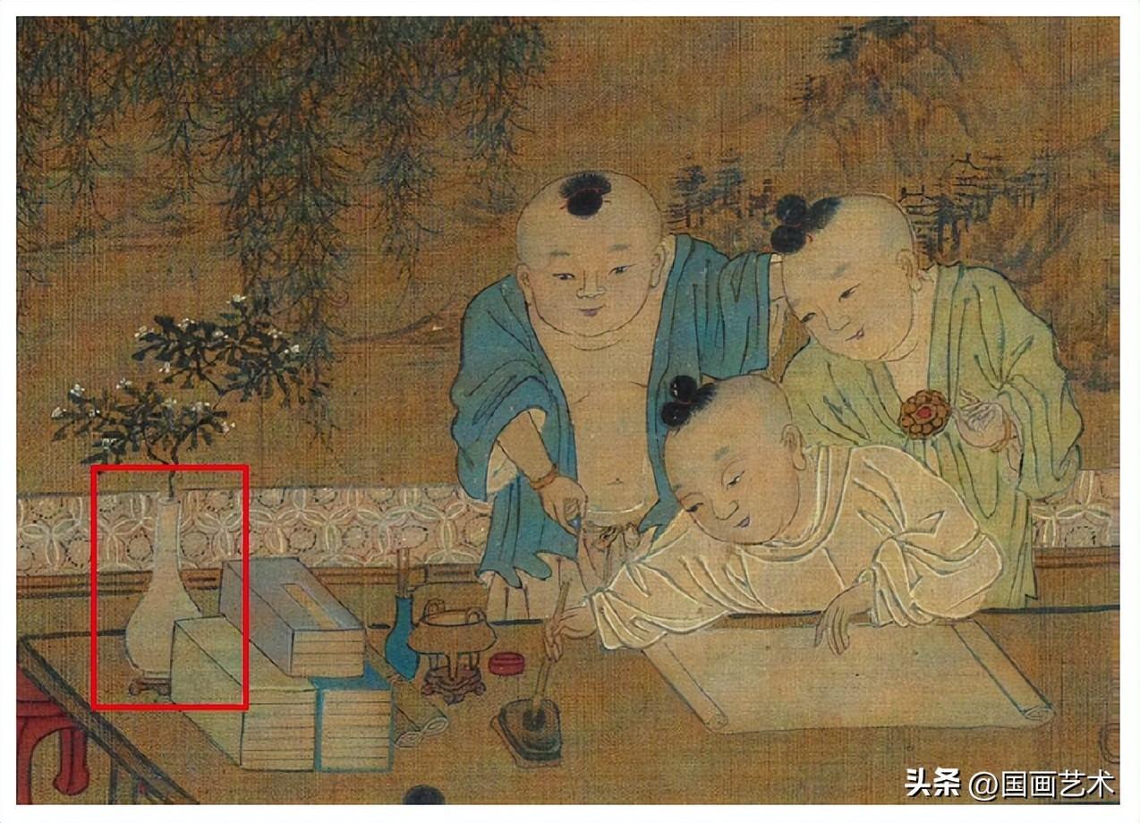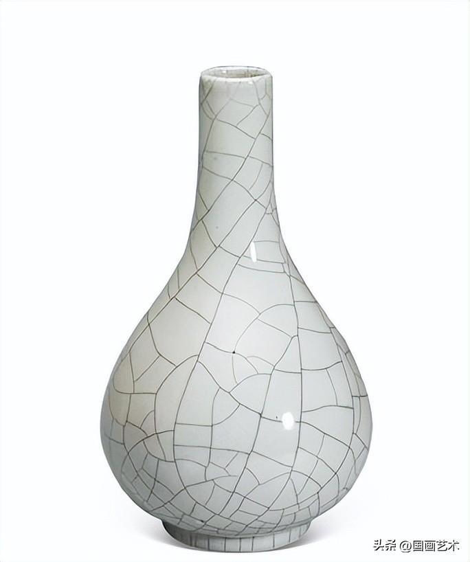 趙宋以降,收藏嗜古之風盛行,哥窯以其古樸典雅之氣質折服衆多欽慕者。張謙德(1577-1643年)《瓶花譜》雲:“尚古莫如銅器,窯則柴、汝最貴而世絕無之,官、哥、宣、定爲當今第一珍品。”,可見哥窯之風靡。據《瓶盆風華—明清花器特展》,2014年,臺北,頁194-195載,臺北故宮藏傳宋人蘇漢臣畫〈長春百子圖〉,畫中可見嬰戲書齋中,桌上膽瓶插一白桂枝,畫面需有童音喧囂,仍不失沉穩靜雅。小瓶插一枝花,爲宋代以來書齋瓶花的特色,明清亦有承襲此風雅。