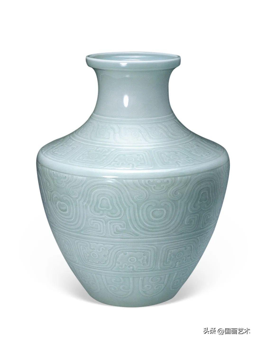 清乾隆 粉青釉刻仿古夔龍紋罍式大尊