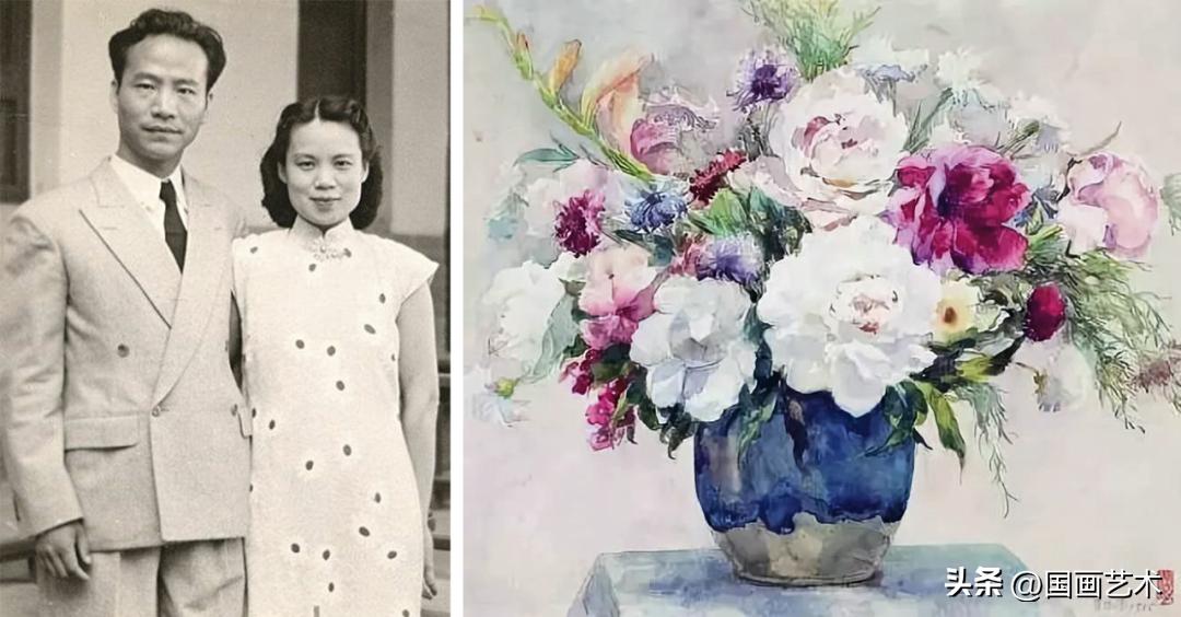 右:蕭淑芳《芍藥》,水彩紙本,37.7×43.7cm,1955年作,北京中國美術館藏