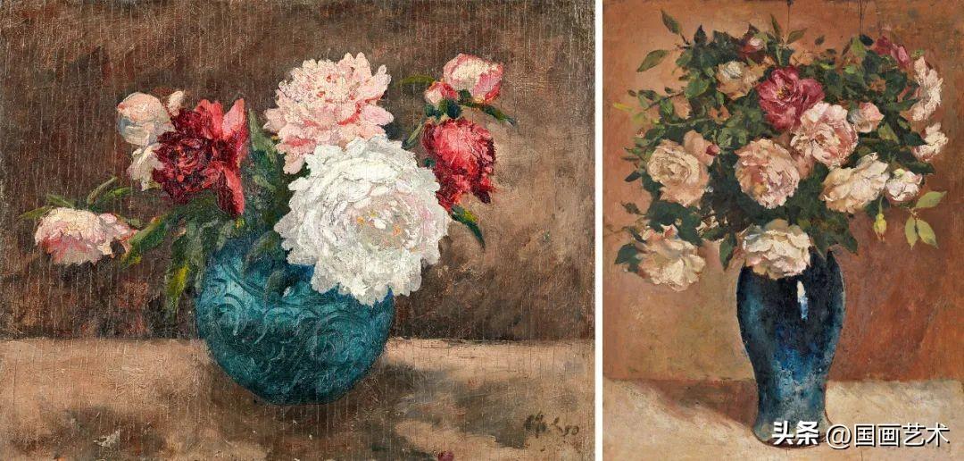 右:吳作人《芍藥》,油彩木板,49×38.5cm,1943年作,拍賣成交價3,836,000港幣